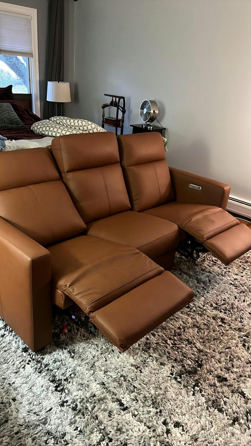 - Power controls on each side of the sofa independently adjust the headrest and recline for a personalized sit