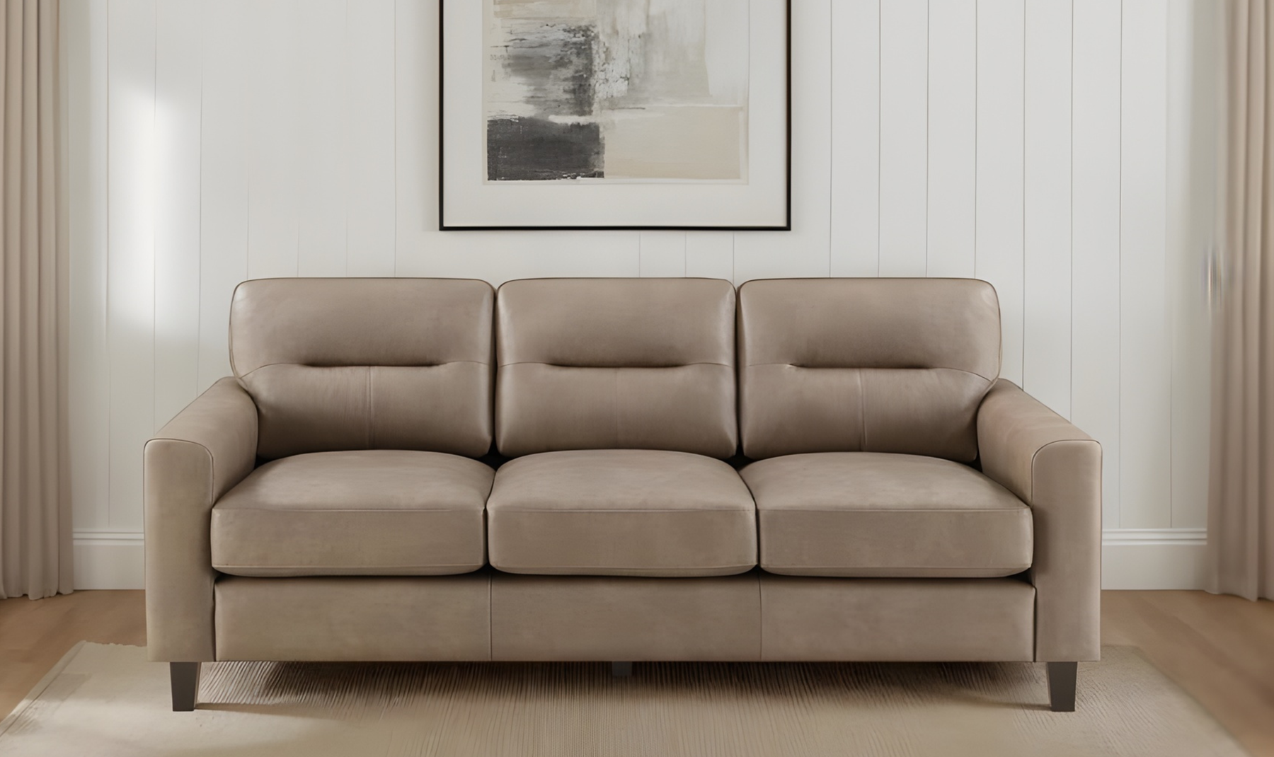 Crafted for both comfort and durability, this sofa is built with structured cushions for firm, supportive seating and detailed stitching for a polished look. Matching block legs and cohesive monochrome styling enhance its modern appeal, while quality materials-including pine, plywood, foam, and polyurethane leatherette-ensure lasting performance. Ideal for anchoring modern living spaces, this sofa delivers timeless style with practical, everyday comfort.
