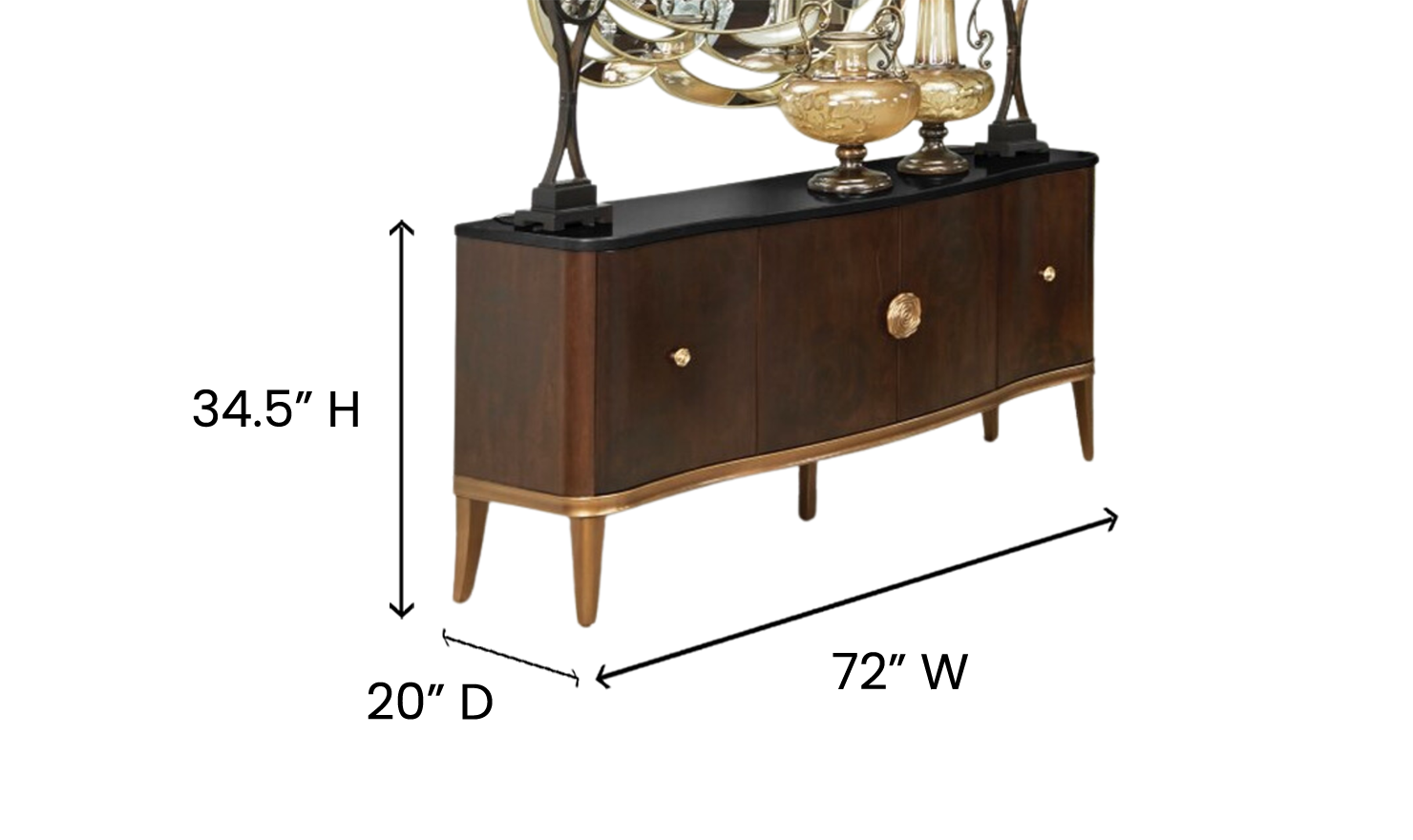 Highlighted by gold-finished camellia knobs, this sideboard draws inspiration from classic gardens, blending functionality with artistic charm. Crafted from durable, high-quality materials, it promises lasting beauty and utility, embodying both grace and strength. [endDescription] [Specifications]