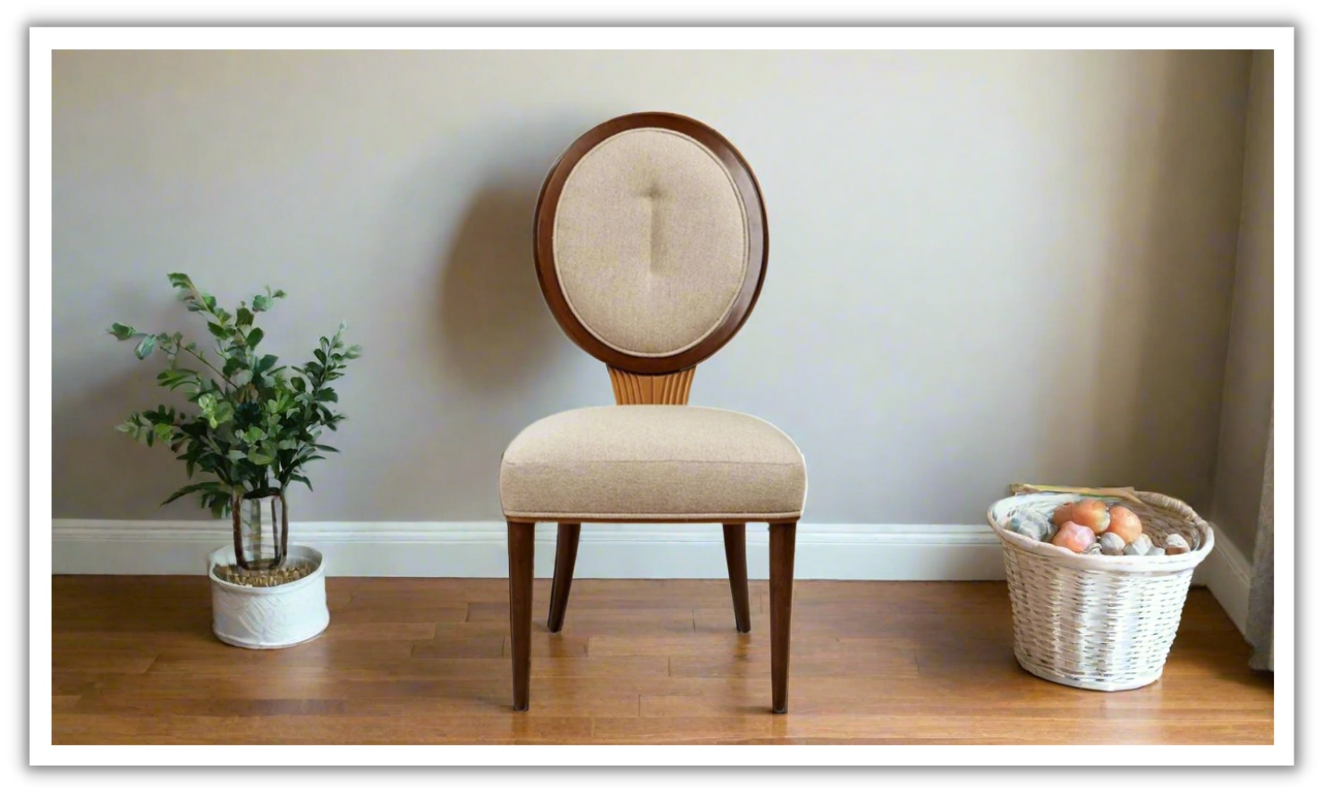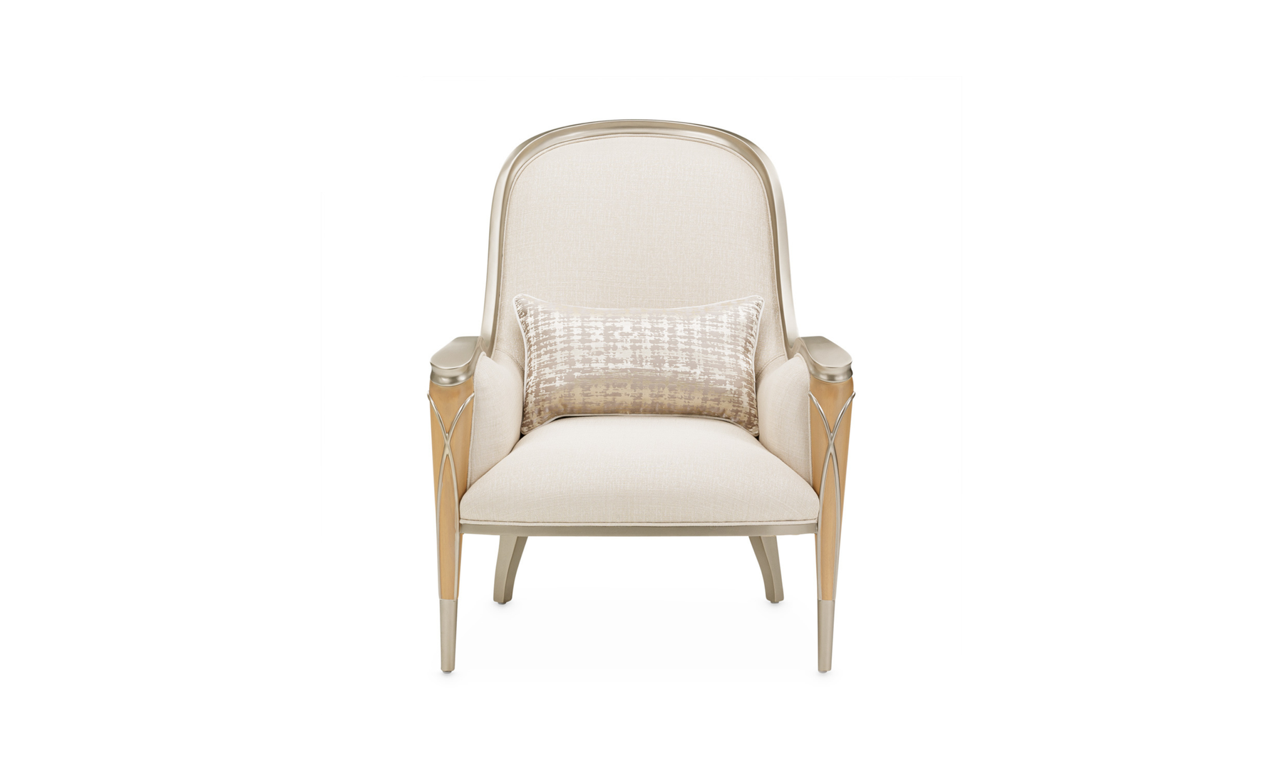 The Aico Villa Cherie Accent Chair in Caramel is a thoughtfully crafted piece that brings both structure and softness to a room. Designed with a gently rounded backrest and sloping arm rails, the chair offers a comfortable seat while maintaining a tailored silhouette. Upholstered in a faux silk fabric, it introduces a subtle sheen and smooth texture, complemented by a coordinating accent pillow for added support.