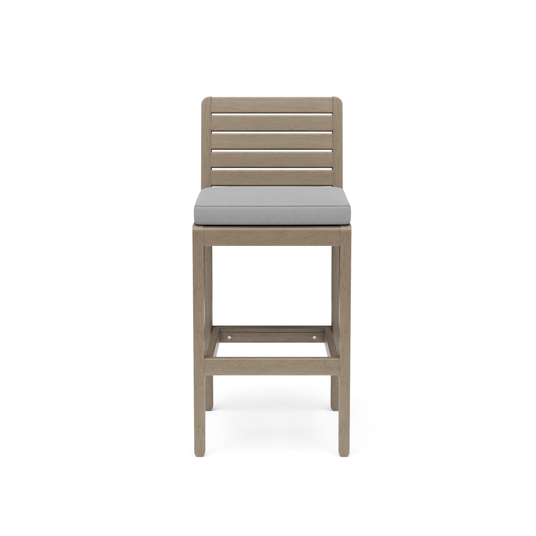 Elevate your outdoor spaces with this Homestyles Sustain Barstool. Designed for use with the Sustain bistro table or other bar-height tables, it brings clean, classic styling and cushioned comfort to any outdoor oasis. The entire frame is made of water-resistant, gray acacia wood with a UV-resistant finish that delivers solid performance year after year.