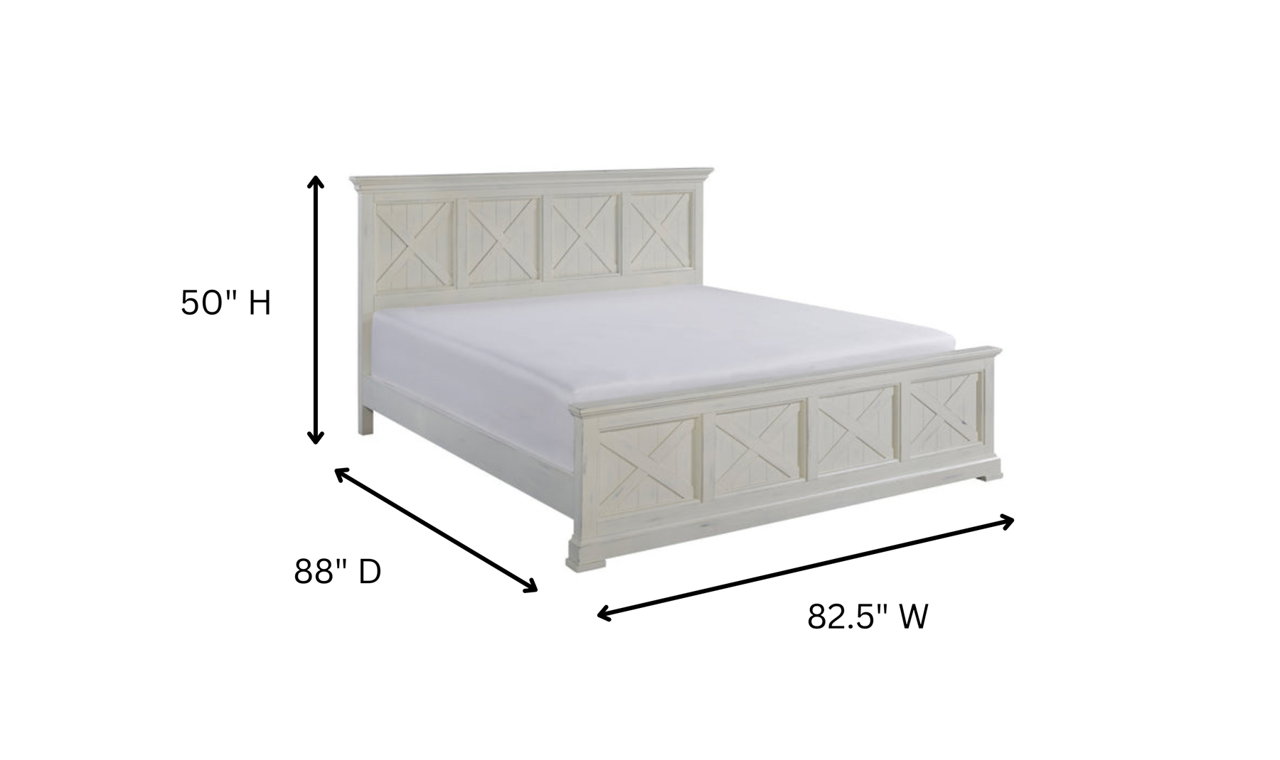 The Seaside Lodge King Bed by Homestyles brings a refined coastal aesthetic to any bedroom setting. Constructed from a combination of solid hardwood and engineered wood, the frame offers dependable strength and long-lasting durability. The wire-brushed veneer provides a softly weathered texture, while the hand-rubbed off-white finish lends a clean, relaxed character suited for traditional and coastal-inspired interiors.