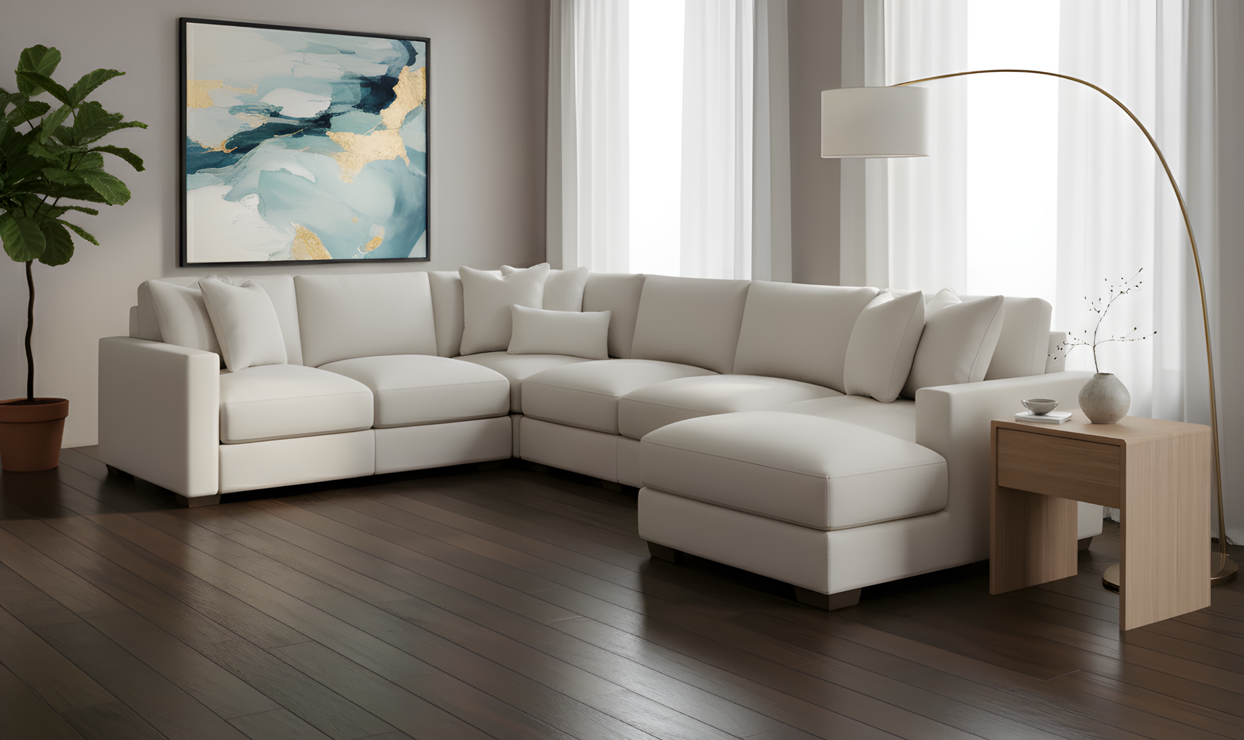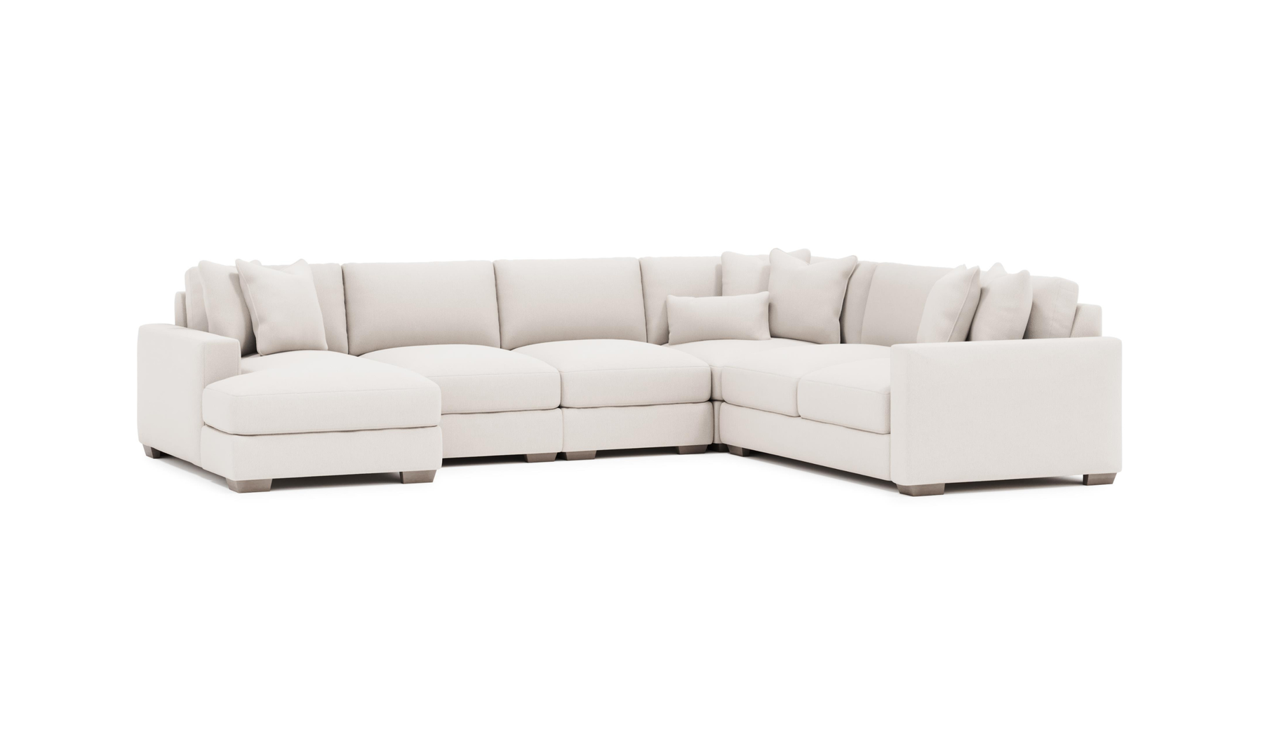 This sectional sofa comes as a 5-piece ensemble, including a chaise for added relaxation. The set also includes 7 pillows, enhancing the overall plushness and providing support where you need it most. The track arms add a touch of contemporary elegance, making it a versatile addition to any living space.