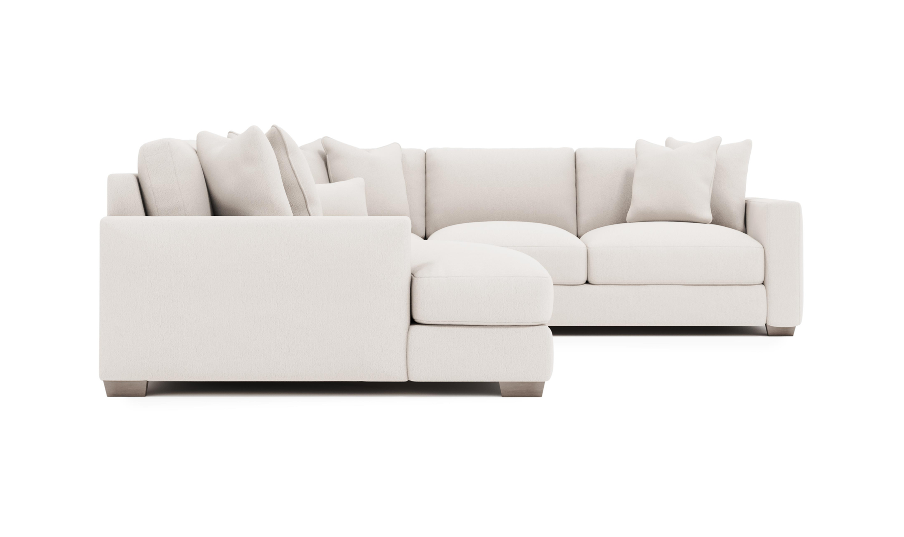 Not just a seating arrangement, the Dawkins Sectional is a statement piece with exposed wood legs and tapered legs that elevate its aesthetic. The loose pillows, along with the (7) fiber-filled, box-edge weltless border back pillows featuring topstitch detailing, contribute to the overall allure.