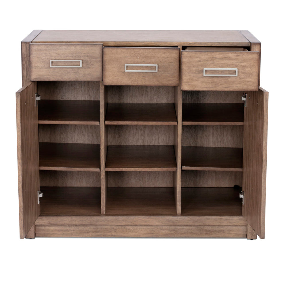 A dining cabinet is specifically made for the dining area to keep dishes, cutlery, glasses, chinaware, linens, etc. These cabinets have shelves and drawers to organize things at different times. Some cabinets also have open shelves to display decor and your finest crockery.