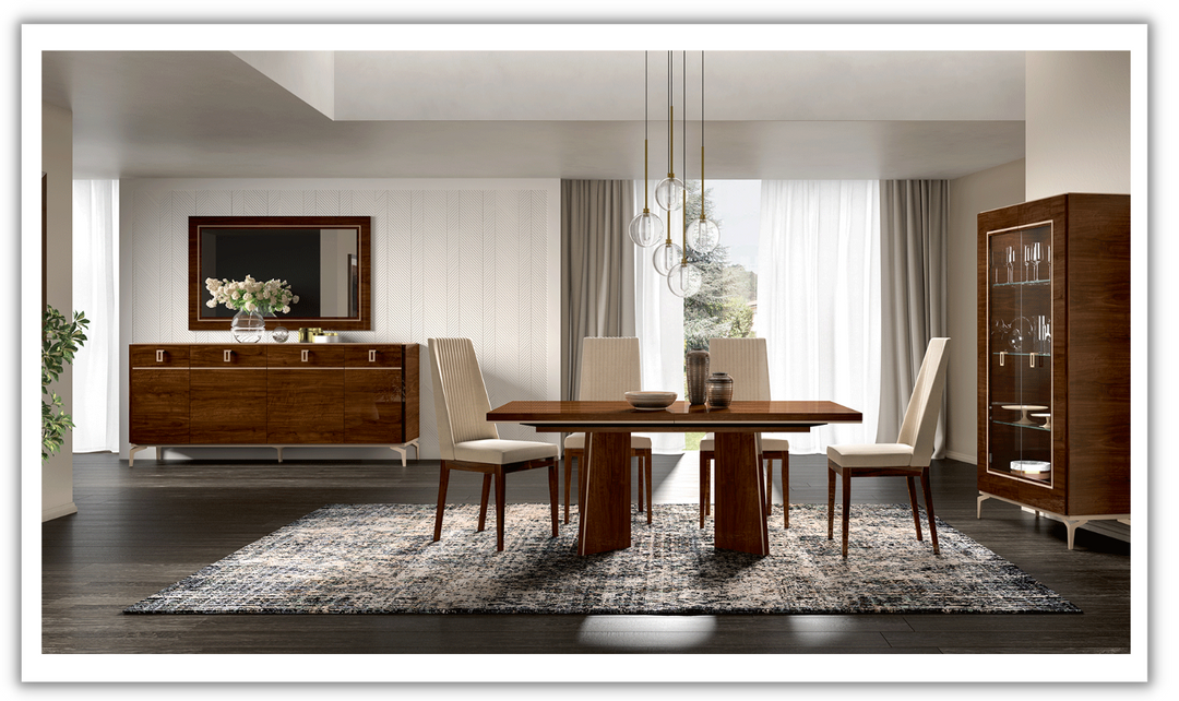 Our 4-seater dining sets are perfect for everyday meals and small families. Our 6-seater dining sets are ideal for those needing more space, making them suitable for family dinners and small gatherings. Our exclusive 8-seater Dining Room Sets are designed for larger gatherings; these sets ensure ample seating for festive occasions, dinner parties, and celebrations so you can easily host.