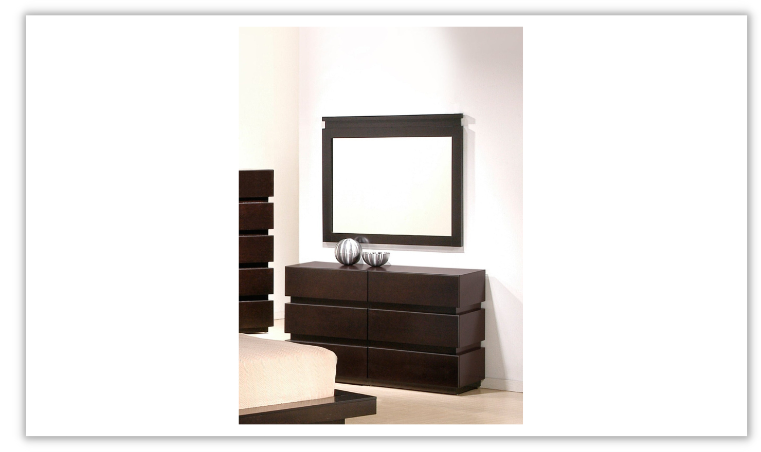 Jennifer Italia Mangrove 6-Drawers Dresser with Mirror in Espresso