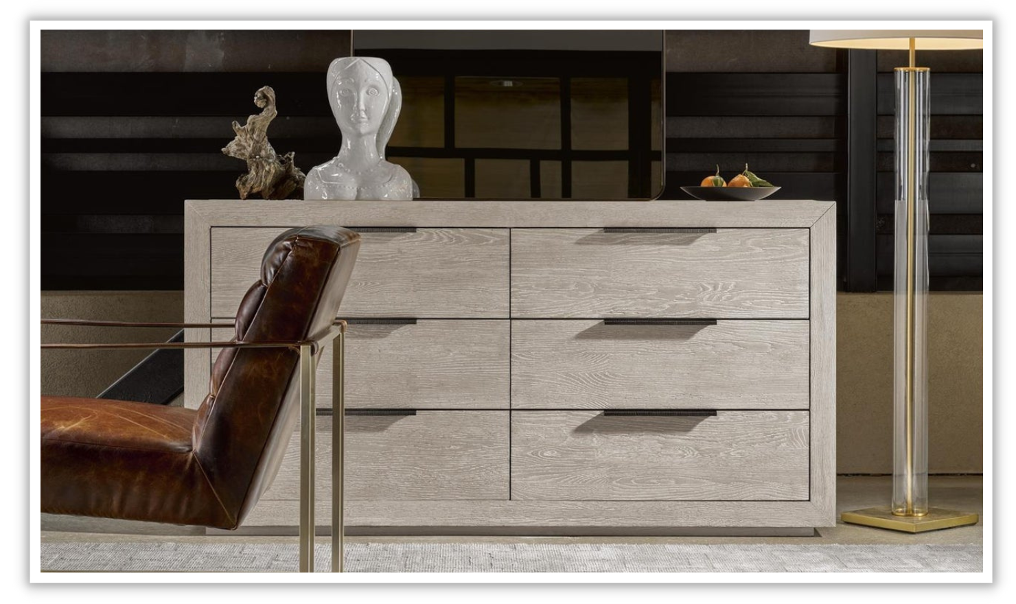 Universal Furniture Coalesce Wooden Light Gray Dresser With Rolling Fog Finish