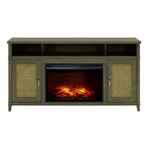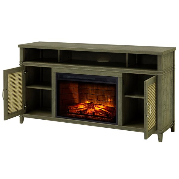 Tahoe 60-in infrared media electric fireplace with grey finish will add a fresh, retro feel to any space. It can accommodate up to a 65-in flat screen TV weighing up to 95 lbs. The top shelf is perfect for neatly displaying your media components up to 50 lbs and includes a built-in cord management system.