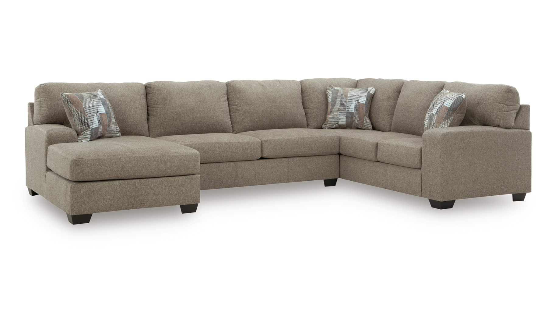 Sink into the Newellen sectional and discover a sanctuary of style and comfort that redefines everyday lounging. Designed for expansive living rooms and curated spaces, this 3-piece ensemble blends contemporary elegance with plush functionality. The L-shaped silhouette, anchored by a left-arm facing chaise, invites you to stretch out and unwind, while the armless loveseat and right-arm facing sofa with corner wedge complete a configuration that’s both sociable and serene.