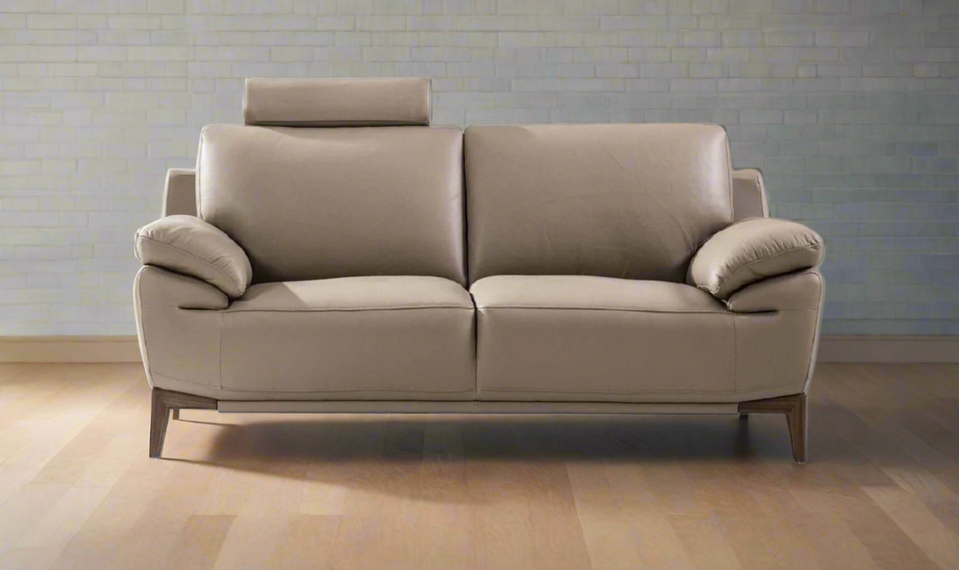 This loveseat is decked out in gorgeous, thick top-grain leather with PVC leather matching. You can choose between beautiful gray and taupe colors to match your interior style. This loveseat's available colors and contemporary design make it suitable for different types of home decor.As stunning as this loveseat looks, it's equally comfortable. High-quality cushions offer a relaxing and comfortable seating experience. The cushioned arms enhance comfort even more. Taking comfort to the next level are the adjustable headrests that let you relax on this loveseat according to your comfort needs.