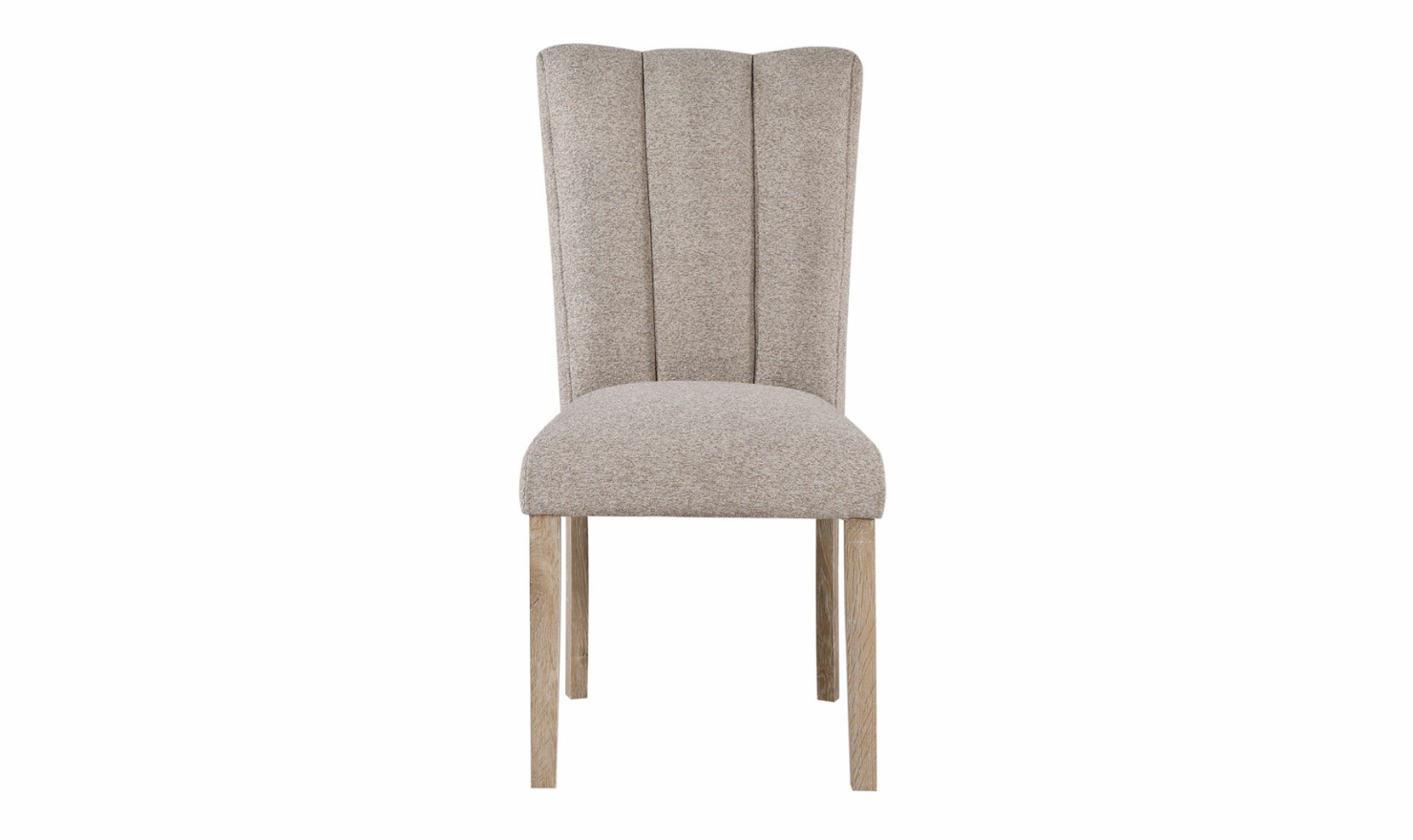 - Beige fabric chairs with Chanel pleats add texture and sophistication.