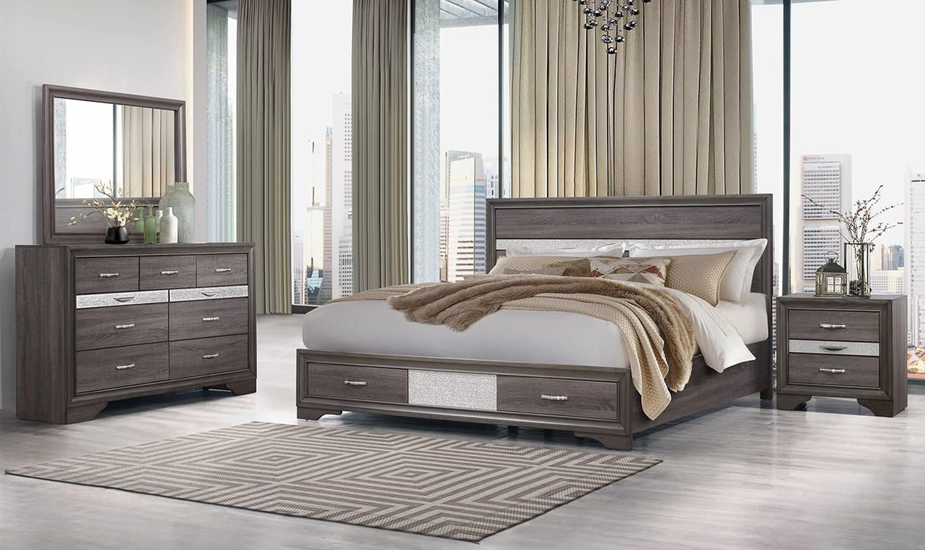 Make your bedroom sparkle with the Seville bedroom collection. Featuring an on-trend weathered grey finish accented with just the right amount of bling, jewelry and under bed storage, the Seville offers uncompromising style and value.