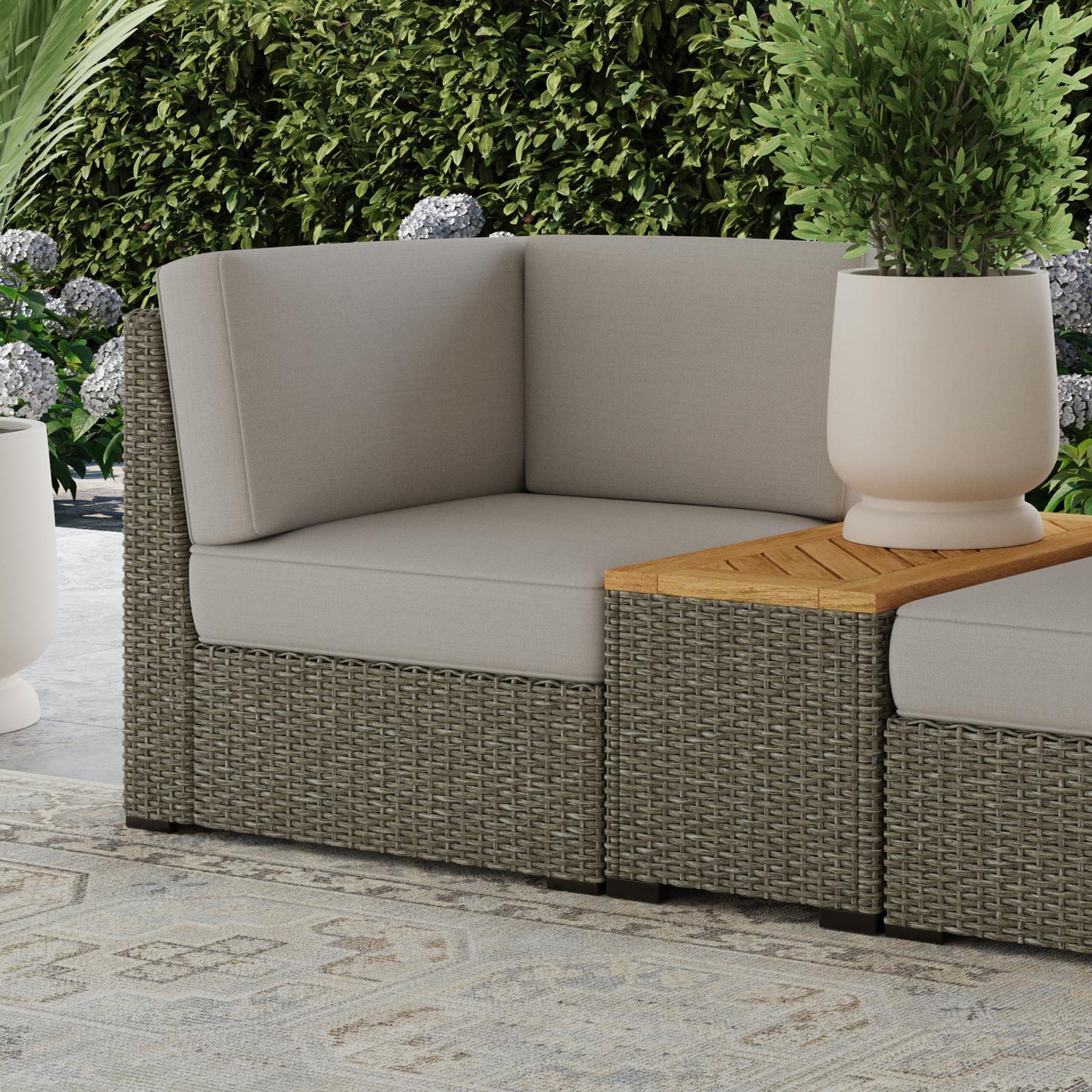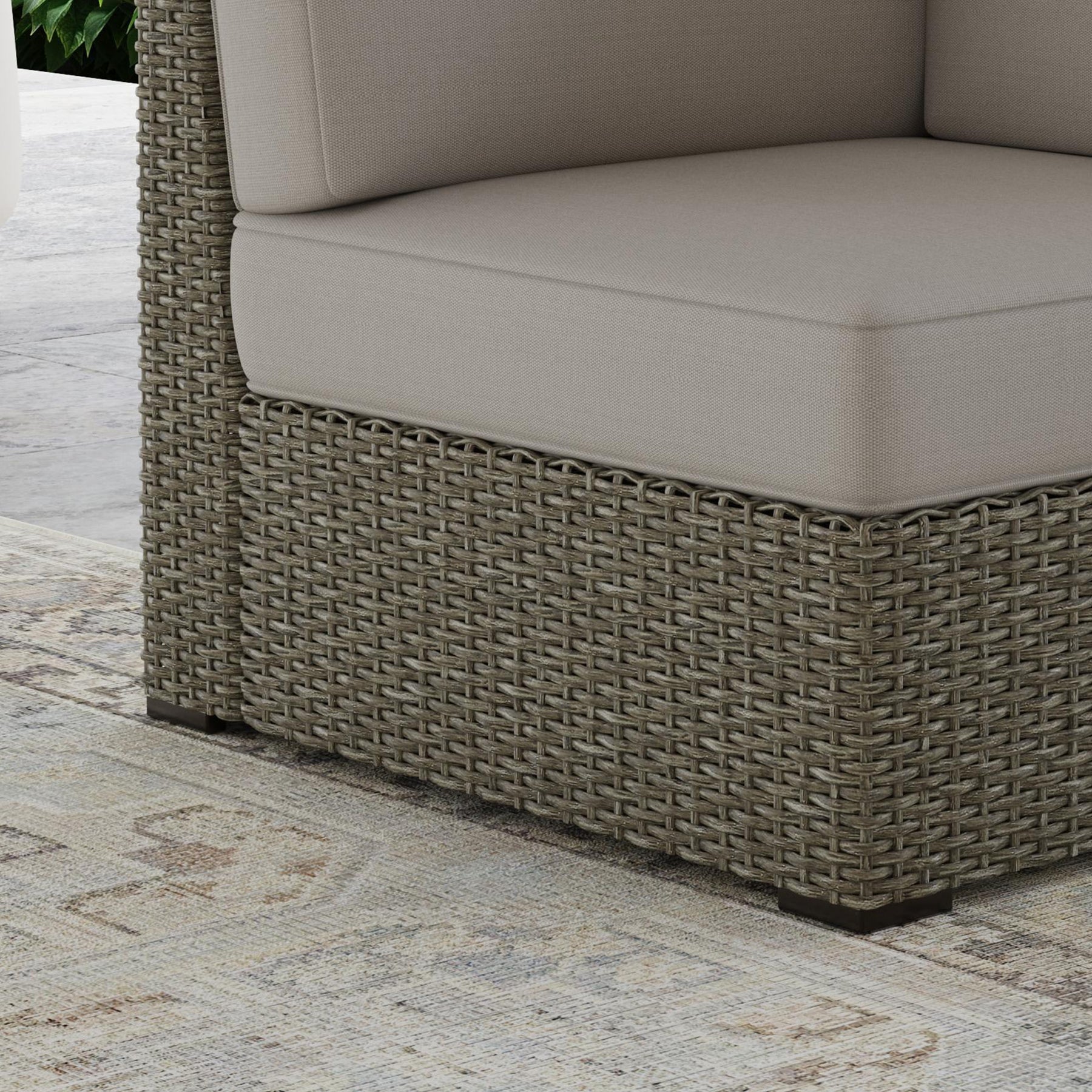 Whether it's just a sweet spot for one or attached to a larger configuration, you'll want to curl up and enjoy the scenery on this Boca Raton outdoor side seat. Frame clips keep it firmly attached to other sectional seats or a side table, so your seating configuration doesn't separate. Designed for indoor or outdoor use, the thick, gray cushions and dark gray, handwoven rattan are fade- and weather-resistant to deliver solid performance year after year.