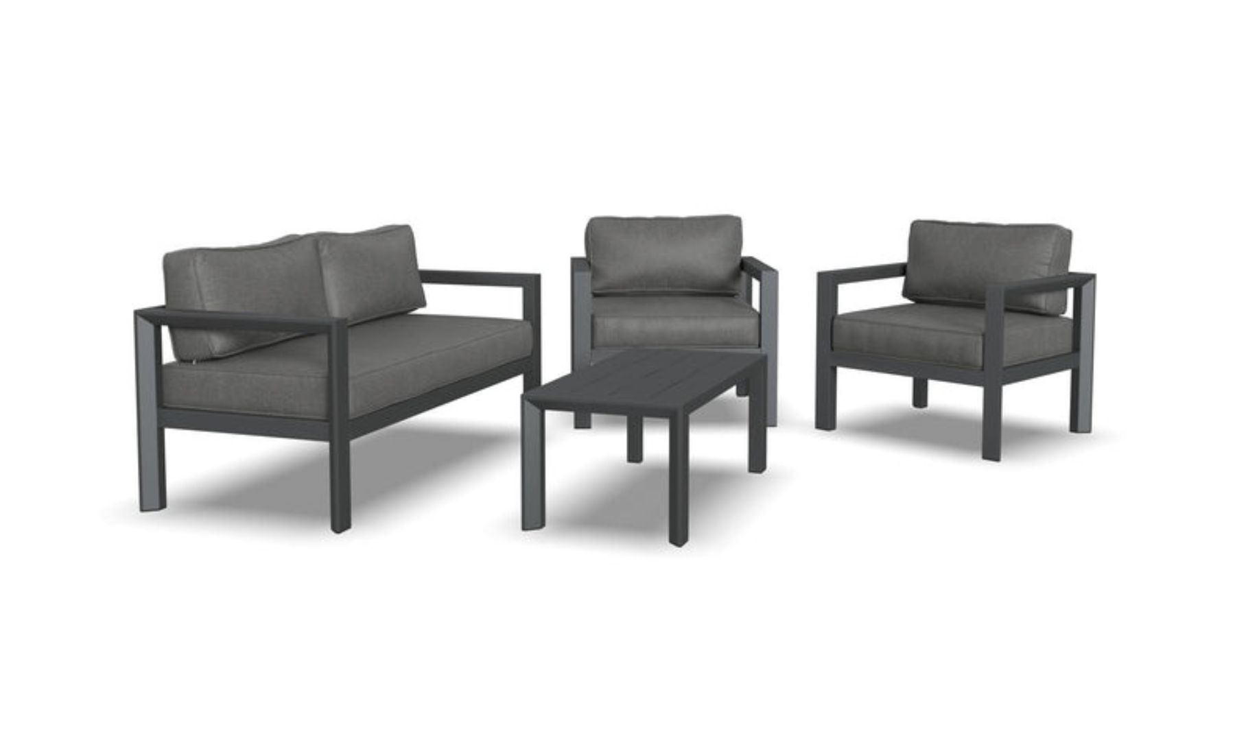 Each piece is fitted with weather-resistant olefin fabric that resists water, UV rays, and mildew, ensuring long-term use with minimal upkeep. The fade-resistant cushions provide firm, supportive seating, while the smooth aluminum surface requires only light cleaning. Ideal for patios, decks, or garden spaces, this set offers dependable comfort and understated modern style for everyday outdoor living.