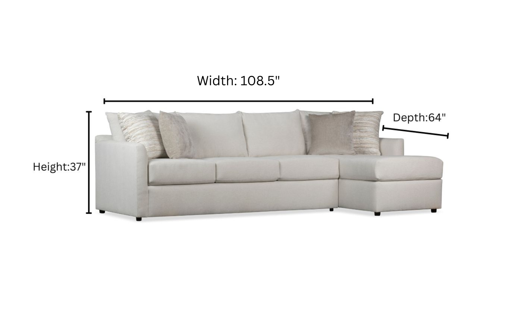 Crafted with both aesthetics and durability in mind, the sectional features high-quality fabric that is soft to the touch yet resistant to wear and tear, ensuring long-lasting appeal. The cushions are plush and supportive, providing the perfect balance of comfort and firmness. Accompanying the sofa are coordinating accent pillows with elegant patterns that add texture and visual interest to the design. The simple yet refined silhouette, with clean lines and tapered arms, enhances the sofa’s versatility, allowing it to seamlessly fit into different spaces.