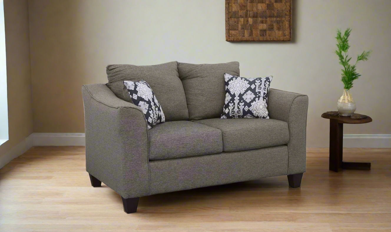 The Salizar Stationary Fabric Living Room Set in Gray by Coaster delivers timeless elegance and exceptional comfort, ideal for those looking to elevate a smaller living space. This three-piece set includes a sofa, loveseat, and chair, all designed with high-density full foam seat cushions for ultimate relaxation. Its sleek silhouette is enhanced by graceful flared arms, bringing both structure and style to your home. Upholstered in a soft, neutral gray fabric, this set blends effortlessly with a variety of decor themes, while block tapered legs in a rich hue provide a warm, grounded touch. Decorative accent pillows complete the look, offering a hint of contrast and sophistication.