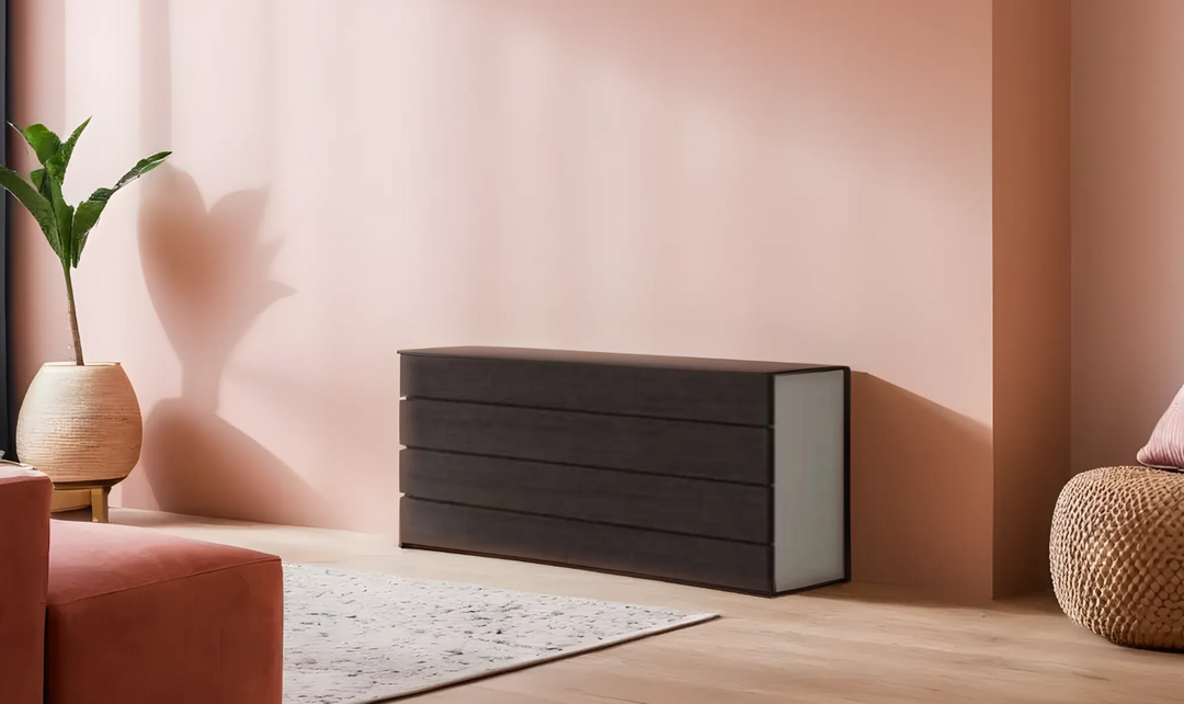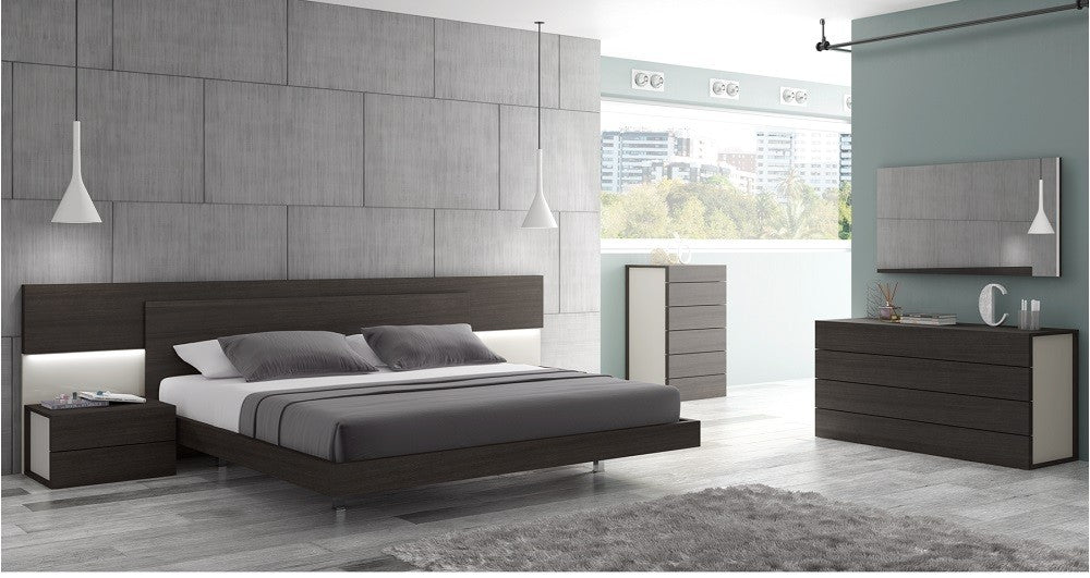 The Backstage premium dresser is a pinnacle of craftsmanship. This elegant dresser features an extraordinary design that harmonically mixes a wenge wood veneer against a contrast of light grey lacquer. This combination looks gorgeous when illuminated by the lights on the headboard that also feature a dimmer function. The combination of wenge with light grey continues in the dresser. As with all of Jennifer's premium collection dresser the case goods come equipped with soft closing tracks by Blum, a world-renowned German manufacturer that sets the standards for the finest quality furniture hardware.