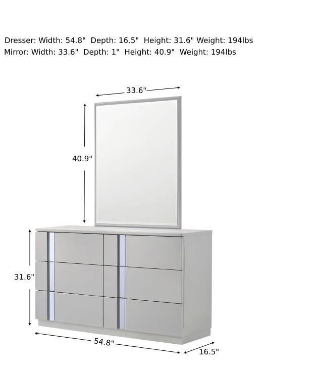 Jennifer Italia Paris Paname 6 Drawers Wooden Dresser With Mirror