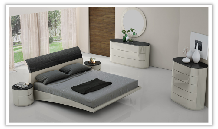The Malles - Jean Paul Bedroom Nightstand from Jennifer Furniture offers a striking appeal with its combination of American Gray Veneer and light gray lacquer. This exquisite contrast immediately captures one's attention, making it a focal point in any bedroom setting.