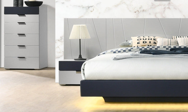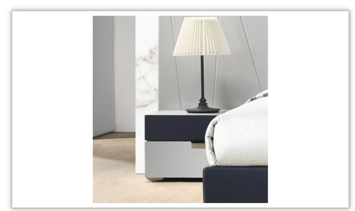 Jennifer Furniture is excited to introduce our new Bedroom Collection, The Profile premium Nightstand. This elegant nightstand features a light grey lacquer finish with navy accents, creating a beautiful and sophisticated design. The nightstand comes with 2 drawers and continues the interplay of light grey with navy seen throughout the collection in its sleek and modern design.