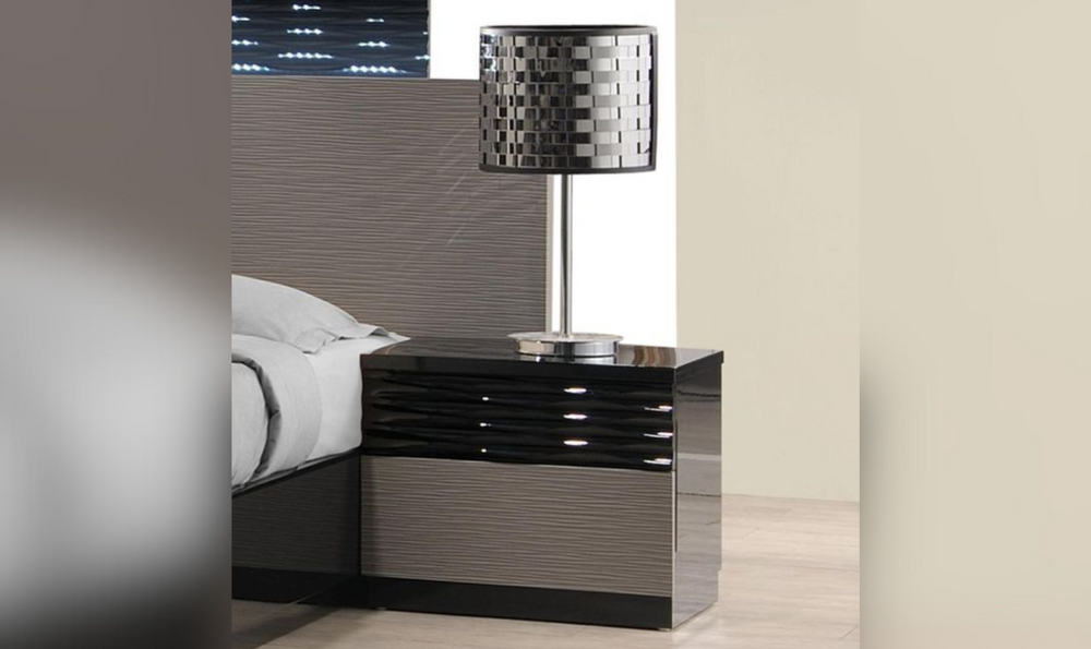 Discover the allure of the Rondo Nightstand, where sleek sophistication meets functional innovation. Crafted with a striking black and grey lacquer finish, this nightstand embodies modern design at its finest.Its standout feature? An integrated LED lighting system adorning the headboard, offering both ambiance and practicality with a simple switch control. This thoughtful addition not only illuminates your space with a gentle glow but also enhances the nightstand's overall aesthetic appeal.