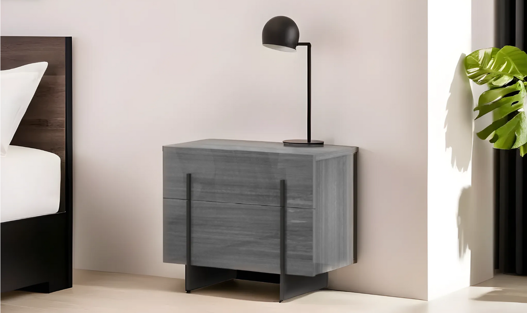 Jennifer Italia Rosace 2-Drawers Nightstand in Moon Gray Finish