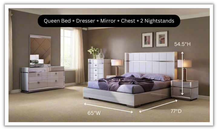 But it's not just about style; this bedroom set is built to last. Its durable construction ensures long-term use. Plus, the quiet soft-closing drawers and full extension glides bring quality and functionality to the forefront. With the Paris Modern Bedroom Set, you're investing in both beauty and practicality for your bedroom. Redefine your sleeping space with this exceptional addition.