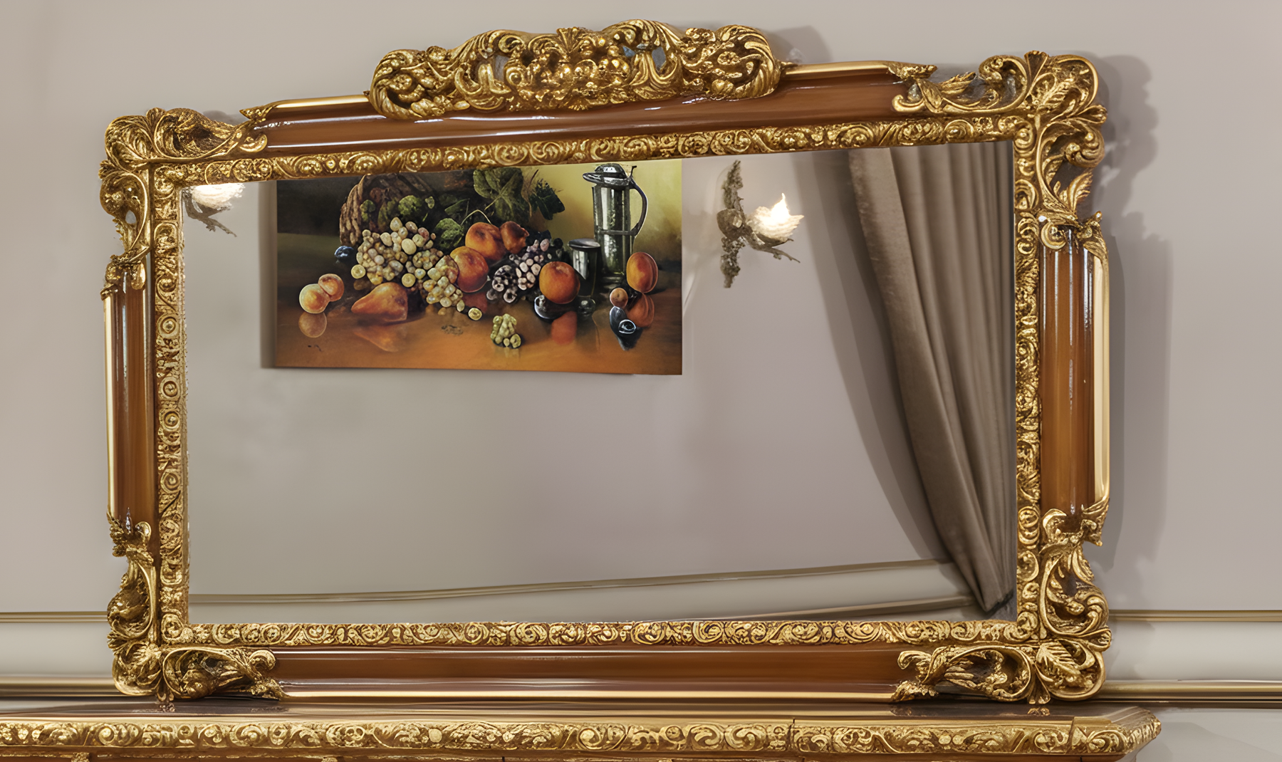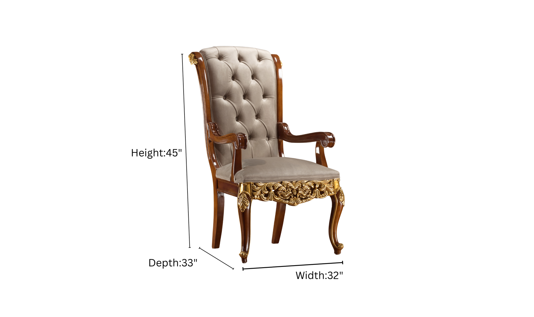 The accompanying buffet with a matching ornate mirror combines both style and functionality. Generous storage space in the buffet cabinets ensures practicality without compromising on elegance. Finished in a soft, muted tone with subtle gilded accents, this set complements classic, contemporary, or transitional interiors. Perfect for formal gatherings or intimate family dinners, the Klaussner Anna Mastercrafted Dining Room Set transforms your dining space into an oasis of luxury and grace.