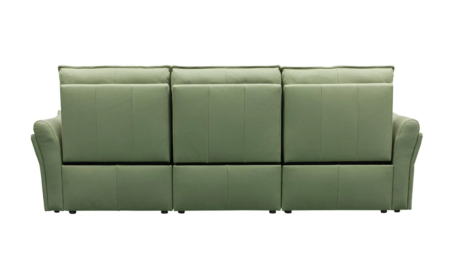 It boasts premium Stone Wash series leather upholstery and it's not just any color; it has a shade of hulk green and gives you vibes of mini hulk in your living room. And the deep stitching? It's like a fashion statement for your furniture. The down-filled cushions and soft foam padding are like sitting on a cloud—a cloud that also happens to be a recliner.