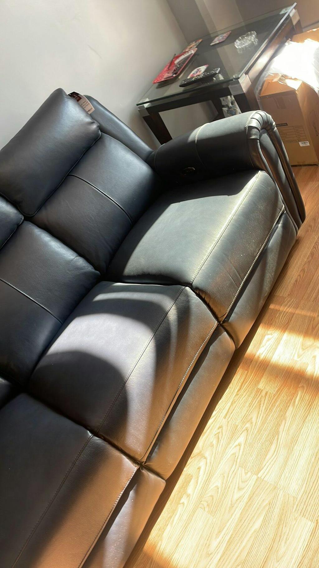 Leather Italia USA began in 1996 with 4 models sourced from the Tuscany region of Italy and was first presented at the April High Point Furniture Market in 1997. Initially, distributing and servicing North & South Carolina, the company grew quickly and within 8 months expanded into the neighboring states with 6 Sales Representatives. Volume grew allowing Leather Italia USA to start factoring which was the funding arm for financial growth. At the time Leather Italia USA had 2 warehouses in Wilmington, NC. Today Leather Italia USA is looked upon as a national brand name and has partnered with many of the finest retail operations in the country. Leather Italia USA has received prestigious awards and has been recognized by many organizations including Furniture Today and several top 100 retail chains. 1-year Limited Warranty on Leather Covering, Legs/Decorative Hardware, Battery Pack / Motor, and Motion Operating Panel. 2-Year Limited Warranty on Frame & Seat Suspension, Cushion Cores, Foam Cushioning/Filling Materials, and Reclining Mechanism and Springs. [Description] Experience the ultimate in comfort and style with the Leather Italia Jonathan 3-Seater Leather Power Reclining Sofa. This stunning piece of furniture is designed to elevate your living space with its sleek, modern design, making it a perfect fit for contemporary homes. The Jonathan sofa features luxurious leather upholstery that exudes sophistication and durability, ensuring it remains a centerpiece in your home for years to come.