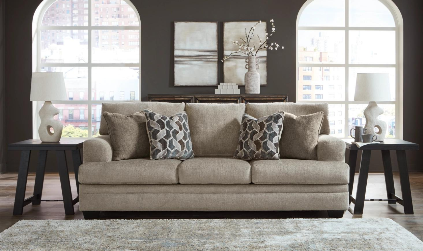 Designed with a platform foundation system, the Stonemeade Living Room Set resists sagging three times better than traditional spring systems. Say goodbye to dips and sags over time – the smooth platform foundation maintains a tight, wrinkle-free look even after 20,000 testing cycles. Elevate your home decor and transform your living space into a haven of comfort and enduring quality with the Stonemeade Living Room Set.[endDescription] [Specifications]