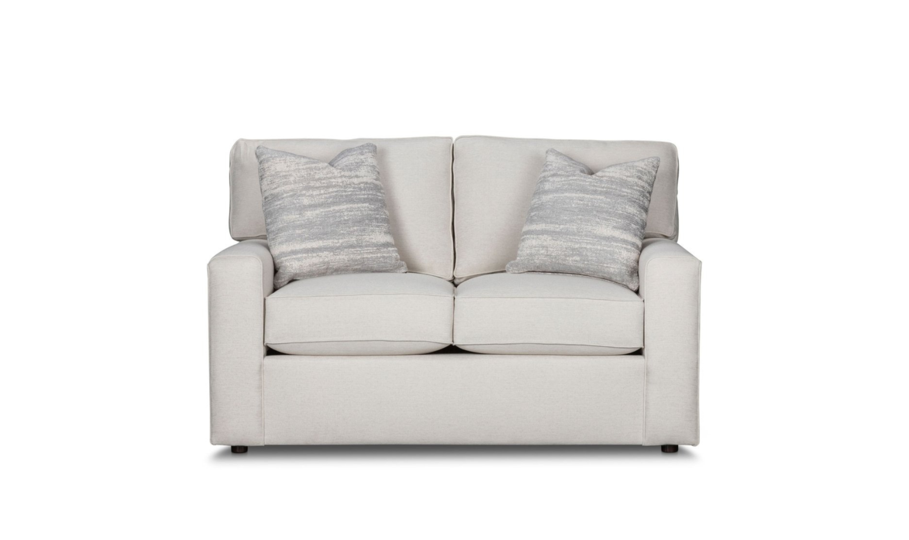 The Klaussner Leigh 2-Seater Fabric Loveseat is the perfect combination of comfort, elegance, and durability, designed to enhance your living space. Its compact size makes it ideal for cozy rooms or as a complement to larger seating arrangements. Featuring boxed cushion seats with Dura Coil construction, this loveseat provides exceptional comfort and support, ensuring long-lasting performance. The loose cushion back and track arms create a sleek, modern silhouette, while the soft fabric upholstery adds a touch of sophistication.