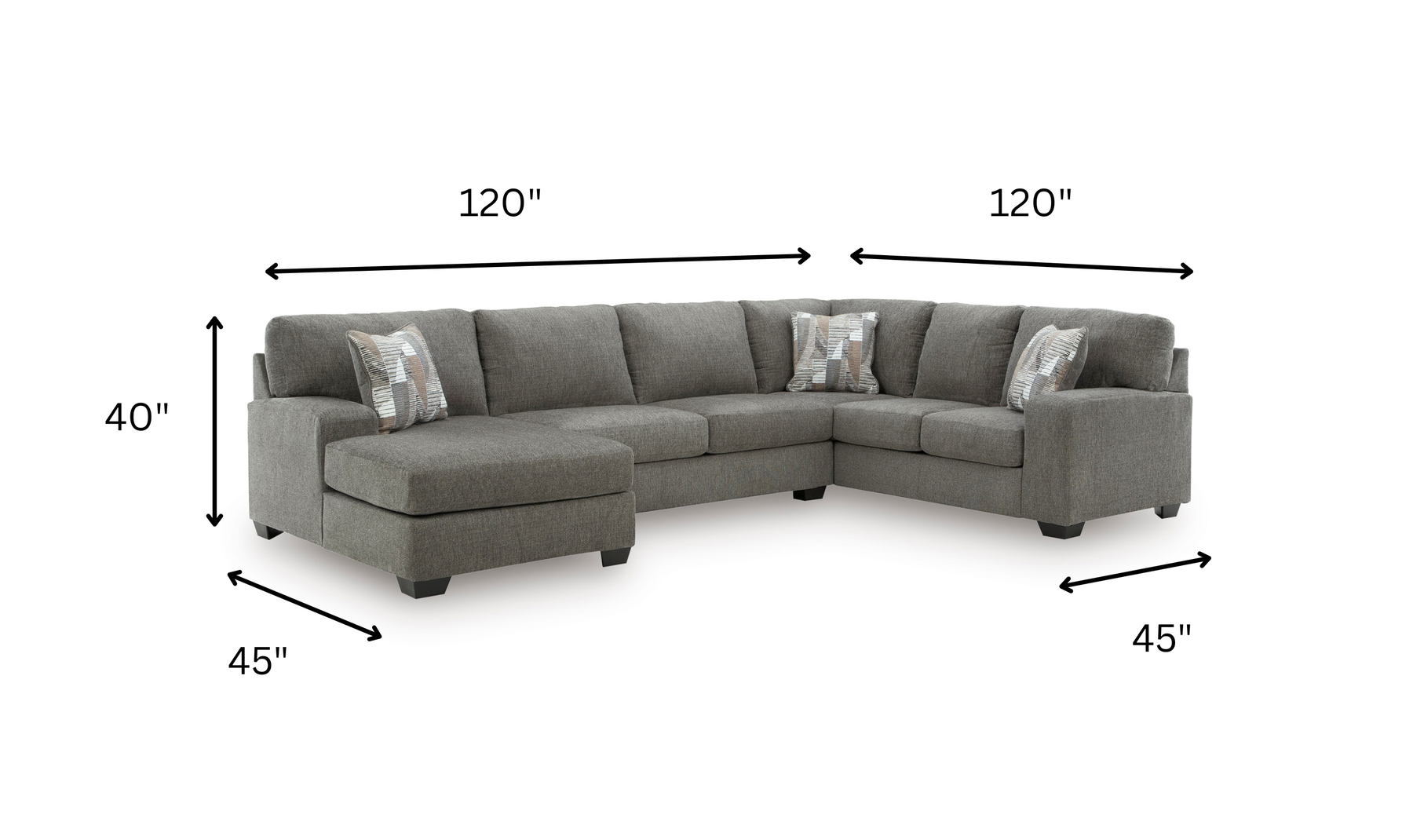 When overnight guests arrive, the built-in sleeper easily pulls out to reveal a memory foam mattress designed for airflow and comfort. The mattress sits on a sturdy metal frame and folds neatly away when not in use. Loose seat cushions, attached backs, and soft accent pillows add to the overall comfort and flexibility of the piece, while the exposed faux wood feet complete the design. This sectional is built for daily use, with thoughtful details that make it a versatile choice for both lounging and accommodating visitors.