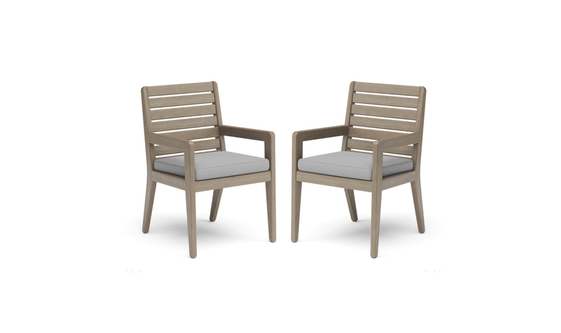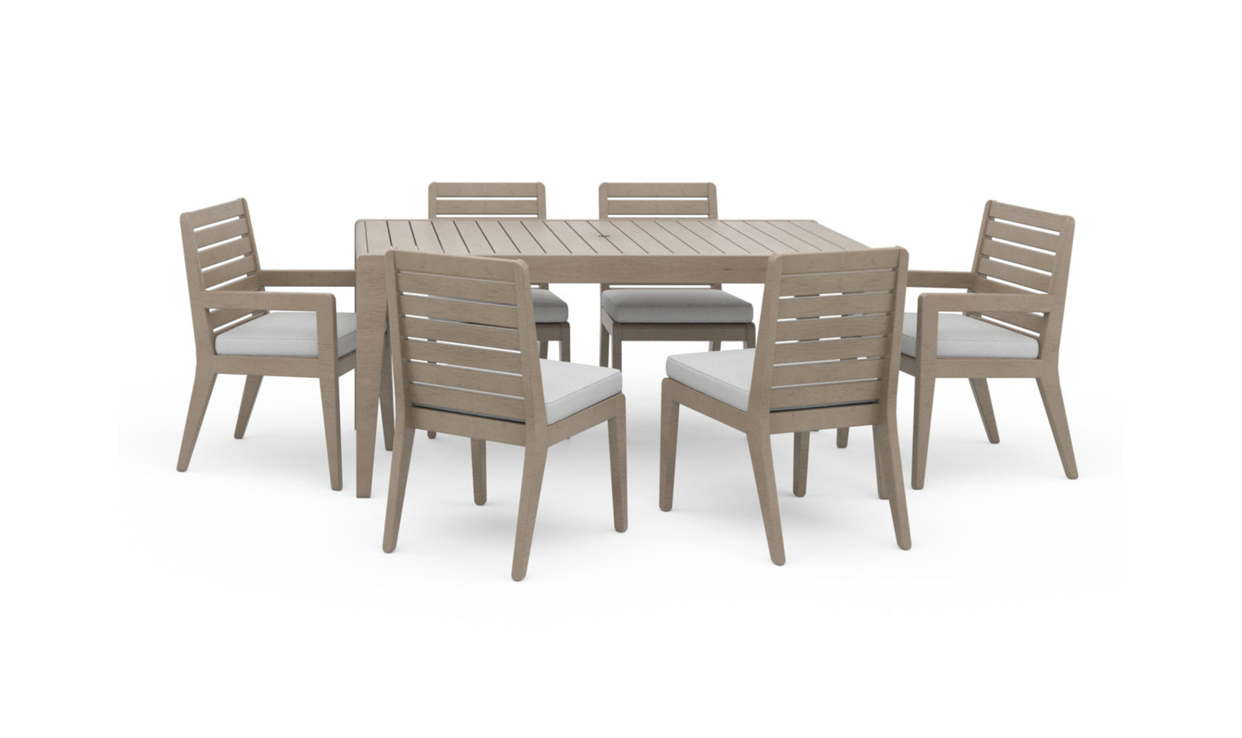 The Homestyles Sustain 7-Piece Outdoor Dining Set combines function and durability for comfortable outdoor living. Constructed from solid acacia wood in a soft gray finish, the rectangular dining table and six matching chairs provide a sturdy and balanced layout for gatherings. The natural grain of acacia wood adds a refined texture, while its weather-resistant quality ensures dependable use through changing seasons.