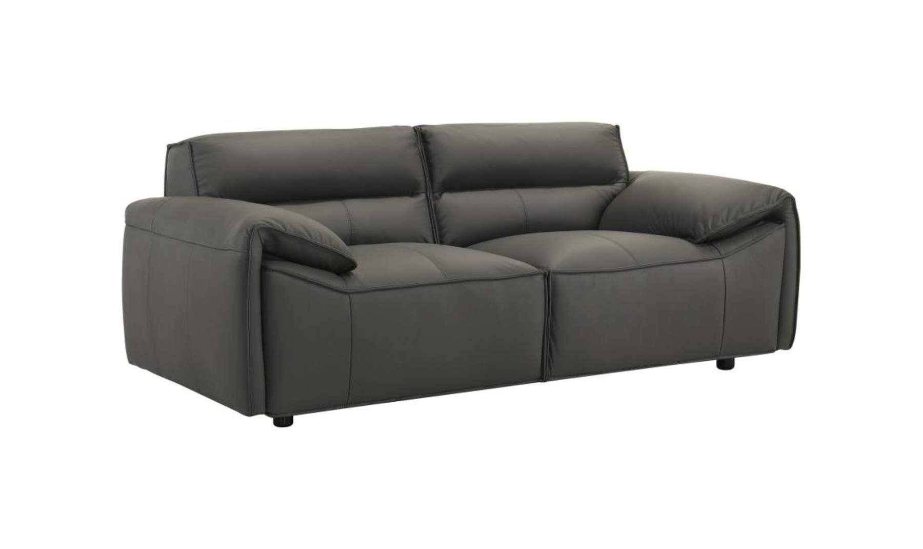 Sleek and sculptural, this Modern Heritage Buxton Leather Loveseat with Wide Track Arms brings together minimalist design and elevated everyday comfort. Upholstered in 100% genuine top grain leather, it offers a rich, luxurious feel with a timeless presence that enhances any contemporary living space. The graphite/Orange leather finish, wide track arms, and low-profile frame create a bold architectural silhouette that feels refined yet inviting.