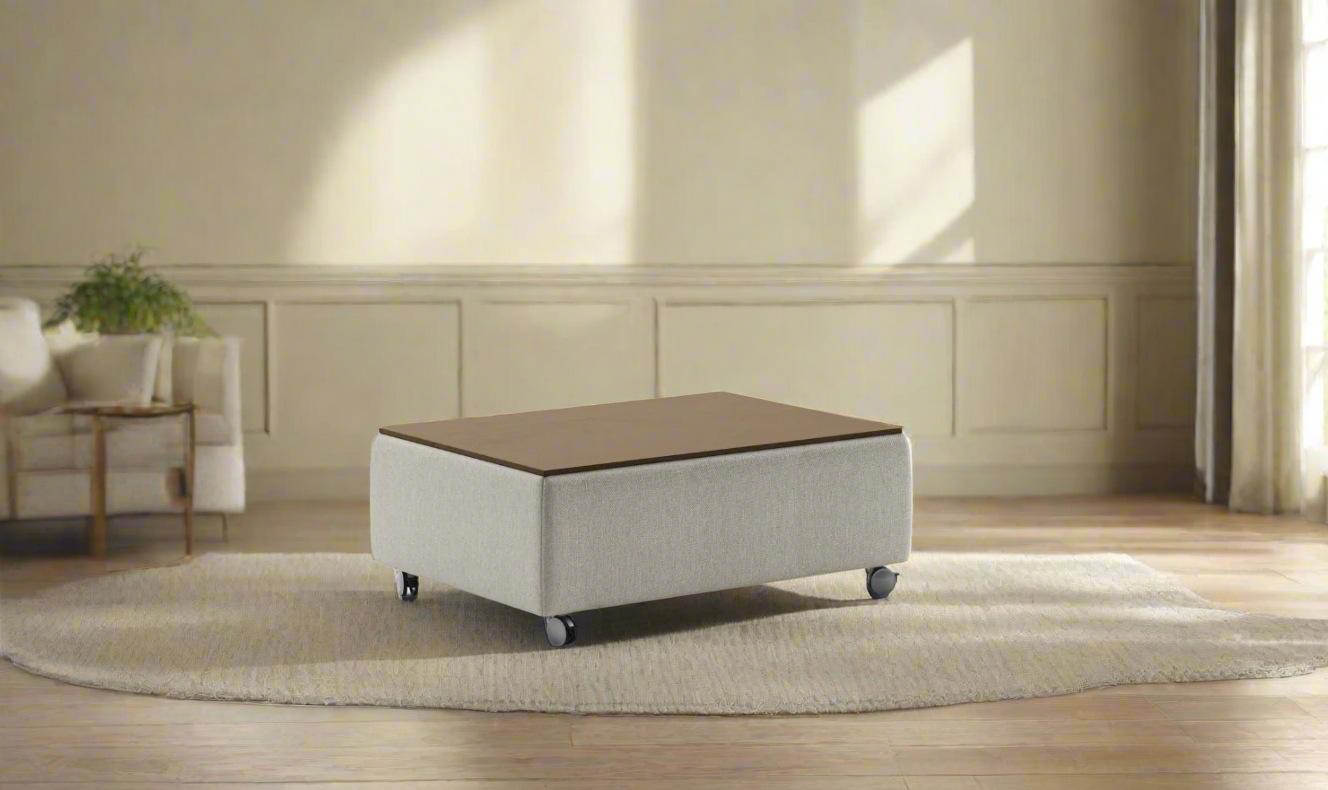 This table offers more than surface appeal; it's a storage solution, too. It provides a spacious storage compartment, helping you maintain a clutter-free space. Speaking of style, you can choose various fabric options to complement your home's decor.