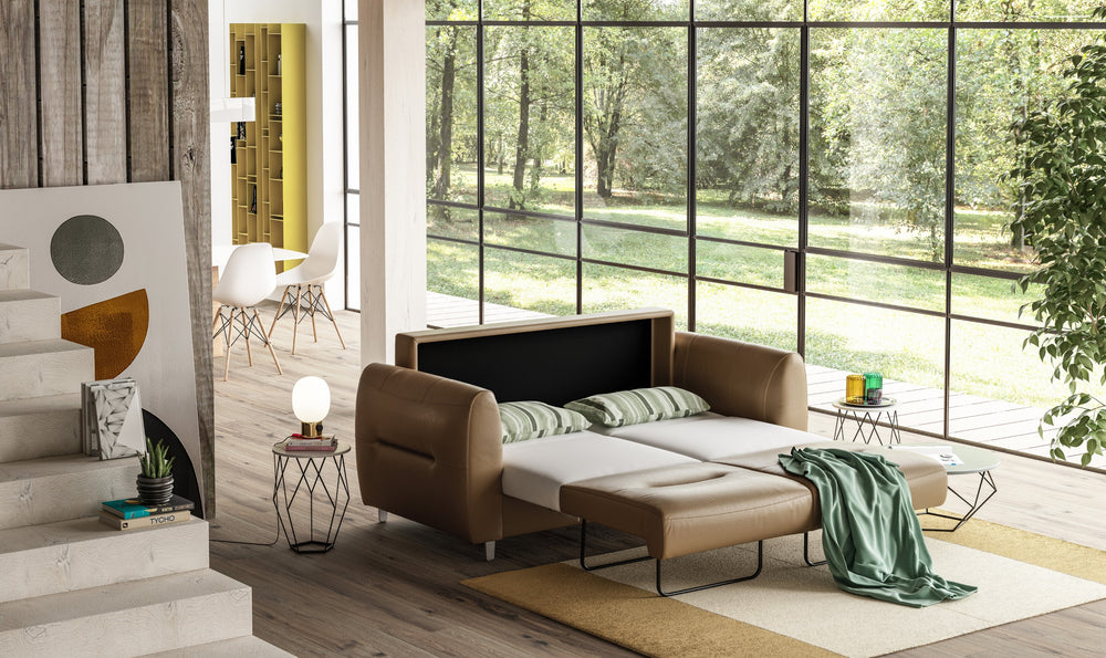 A luxury sleeper is made of high-quality materials, remarkable craftsmanship, and refined details. These sleeper sofas often feature high-quality upholstery, such as delicate fabrics or genuine leather, sturdy solid wood or metal frames, innovative mechanisms, and suspension with clean design.