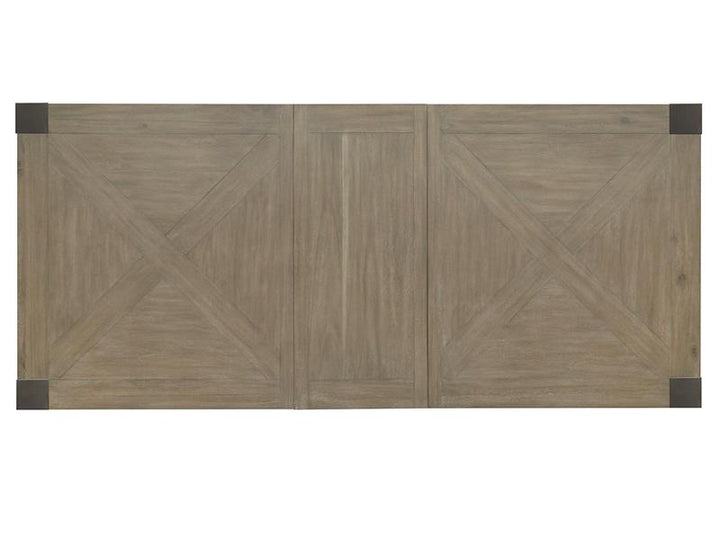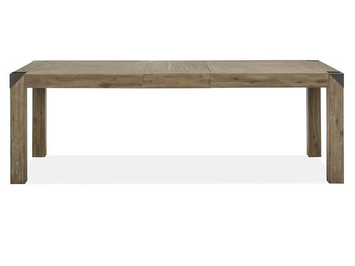 Table can be extended to 90" W x 40.25" D x 30" H with one center removable extended leaf (18"/piece).