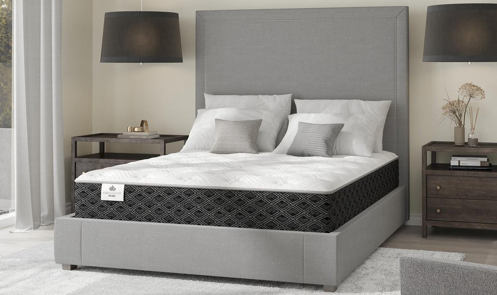 A Prime mattress features edge-to-edge support with a reinforced coil system for a consistent sleep surface.