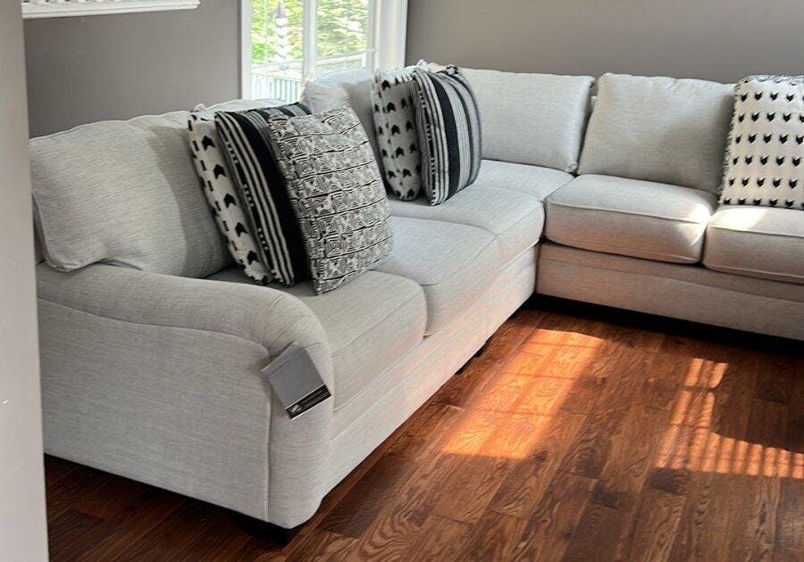 Adding a delightful layer of interest, the accent pillows introduce an on-trend pop of pattern, infusing your space with a touch of contemporary flair. Elevate your living room with a charming approach to comfort and design, where tradition meets innovation in perfect harmony. The Huntsworth Sectional Sofa in Gray by Jennifer Furniture is more than just furniture – it's a conversation starter, a reflection of your refined taste, and a haven of comfort for you and your loved ones.