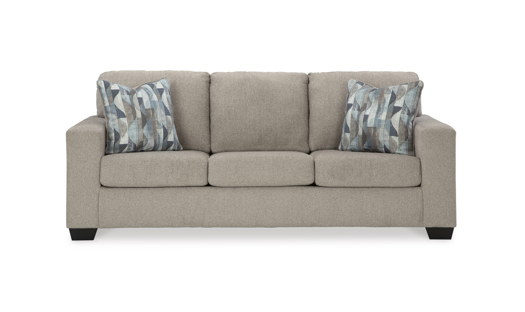 This sofa delivers both comfort and style in one cozy package. The cushions are generously padded, offering a soft yet supportive seating experience that's perfect for relaxing. The neutral fabric has a soft, textured finish that fits beautifully with a variety of decor styles, while the included patterned pillows add a fun, modern accent.....