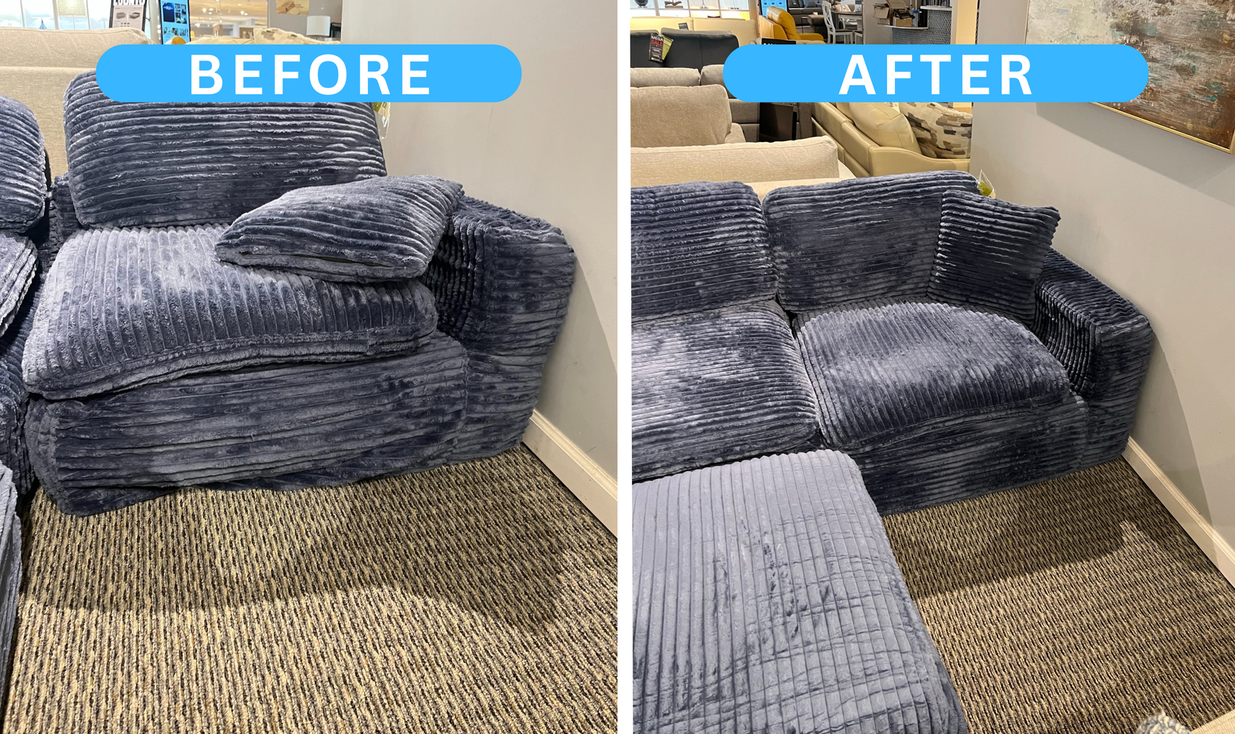 The Klaussner Pacis 3-seater sofa with matching ottoman is designed for deep, relaxed comfort while maintaining a structured, modern presence. Upholstered in durable dark blue corduroy, the set features pronounced horizontal ribbing that adds rich texture and visual depth. The low-profile, block-base construction gives the sofa a grounded, contemporary silhouette that works well in both open-plan and compact living spaces.