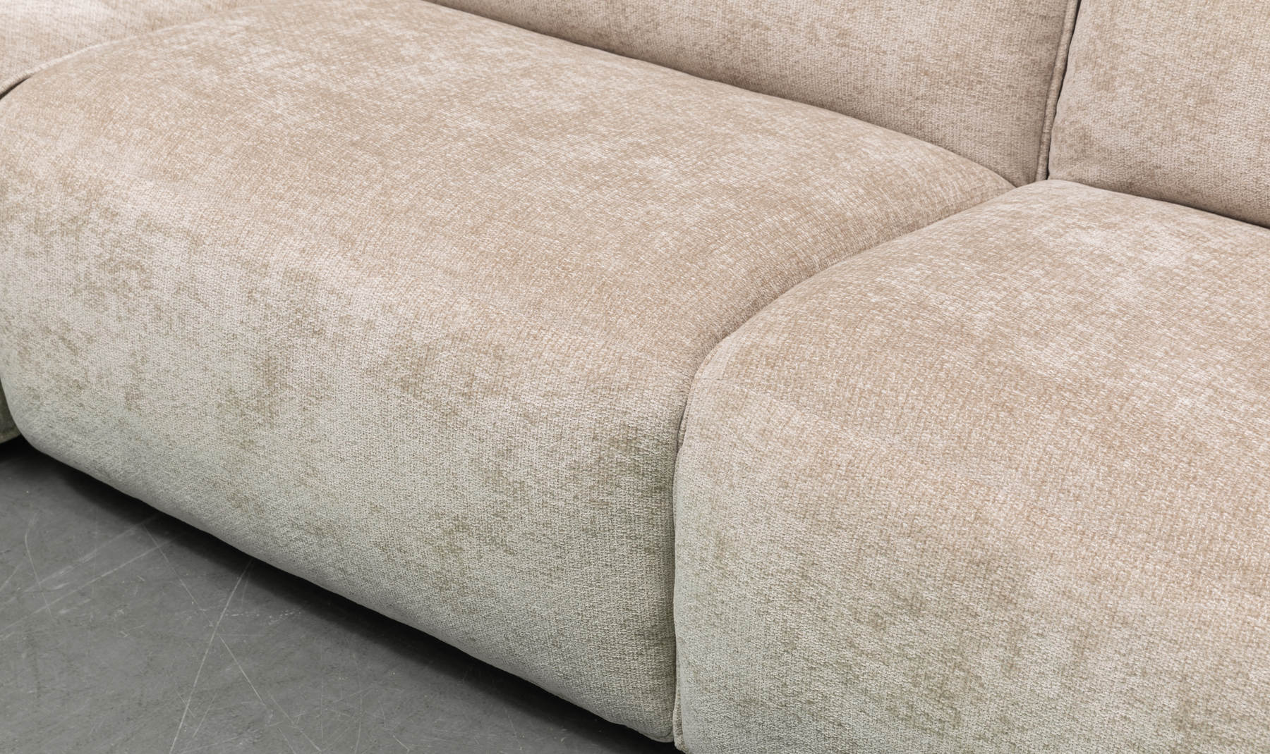 Built on a sturdy plywood frame, the Spazio sectional offers balanced support through its S-spring seat construction. The seating, back, and cushions are filled with a blend of foam, feather, and polyester fiber, providing a comfortable yet supportive feel that holds its shape over time. Finished with black plastic legs, the sofa maintains a clean, modern profile while remaining suitable for regular family use and extended lounging.