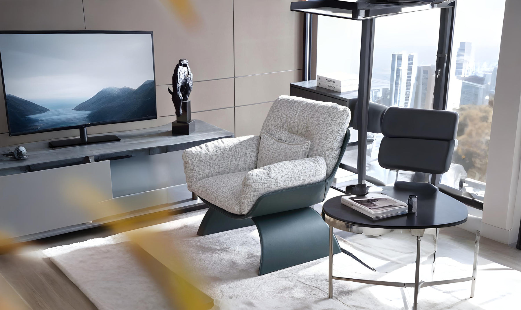 The Klaussner Spazio Light Gray Leather Lounge Chair brings a relaxed, grounded feel to spaces designed for comfort. The interior seating areas are upholstered in soft fabric, offering a breathable, smooth surface that becomes more comfortable with use. A deep seat and gently contoured back provide supportive comfort for extended reading, conversation, or moments of quiet rest, without appearing bulky or overdesigned.