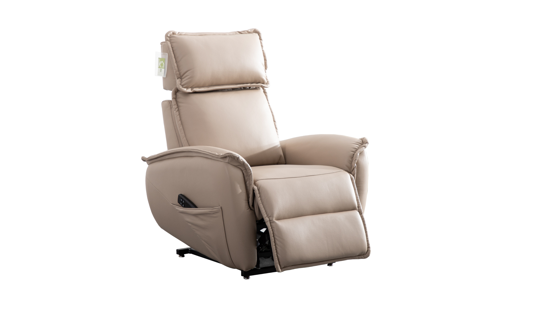 The dual-motor lift chair is designed to provide steady support through a smooth, remote-controlled lifting and reclining mechanism. Its dual-motor system allows the backrest and footrest to adjust independently, giving the user more control over positioning. Built on a eucalyptus wood frame, the chair maintains durability while supporting a simple, grounded form. Upholstered in air leather, it offers a soft-touch surface that is easy to maintain and suited for everyday use.