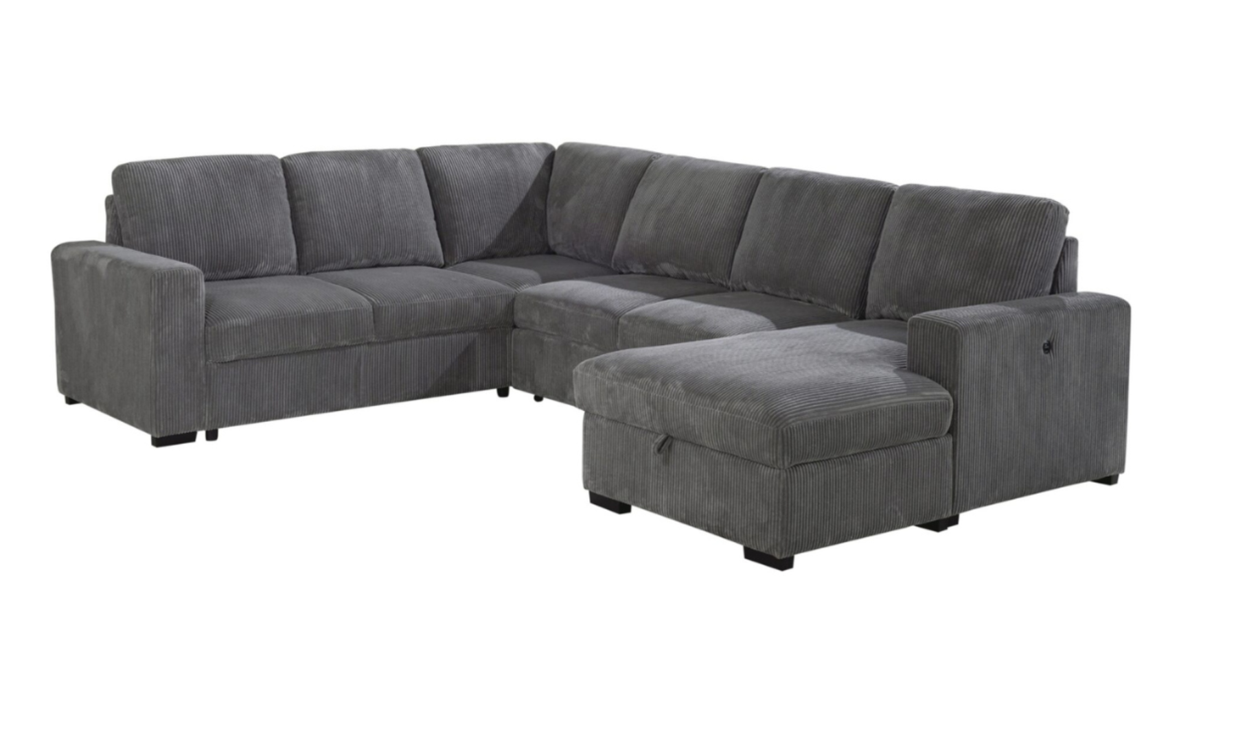 Designed for comfort and built with everyday living in mind, the Global Furniture Gray 5-Seater Fabric Modular Sectional Sleeper Sofa offers a practical solution for modern homes. Upholstered in soft gray corduroy, the sofa has a textured, inviting surface that’s both durable and comfortable for daily use. With a spacious five-seat layout, it’s ideal for families or households that frequently entertain, and the neutral color complements a wide range of interior palettes.