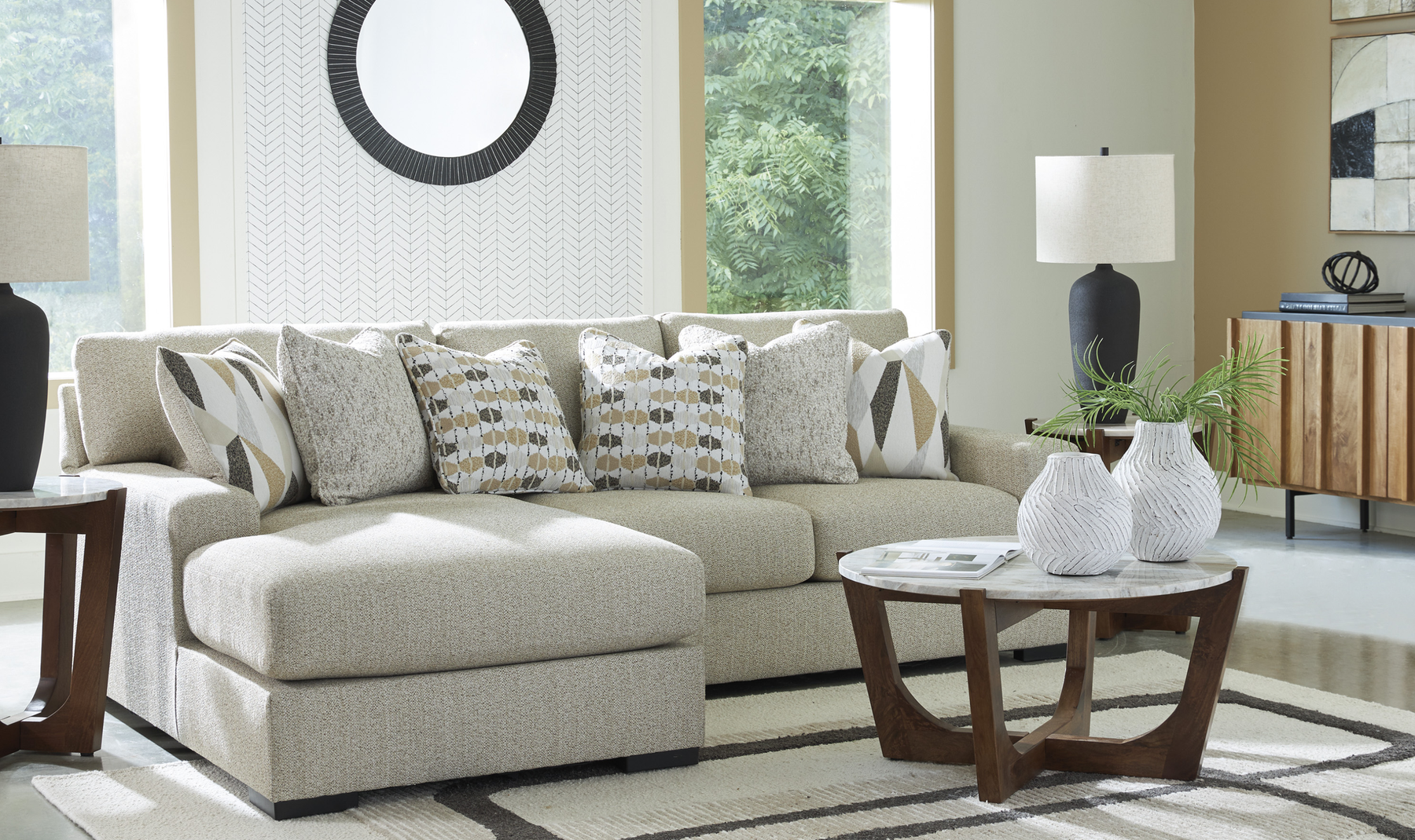 Comfort is built into every layer, from the high-resiliency foam cushions to the feather-fiber wrap that adds softness without losing support. The Next-Gen Nuvella™ fabric is made for real life: cushion and pillow covers unzip for machine washing, and the fabric resists stains and wear from daily use. With reversible cushions and a quick assembly process, this sectional is designed to be lived in, maintained easily, and enjoyed without fuss.
