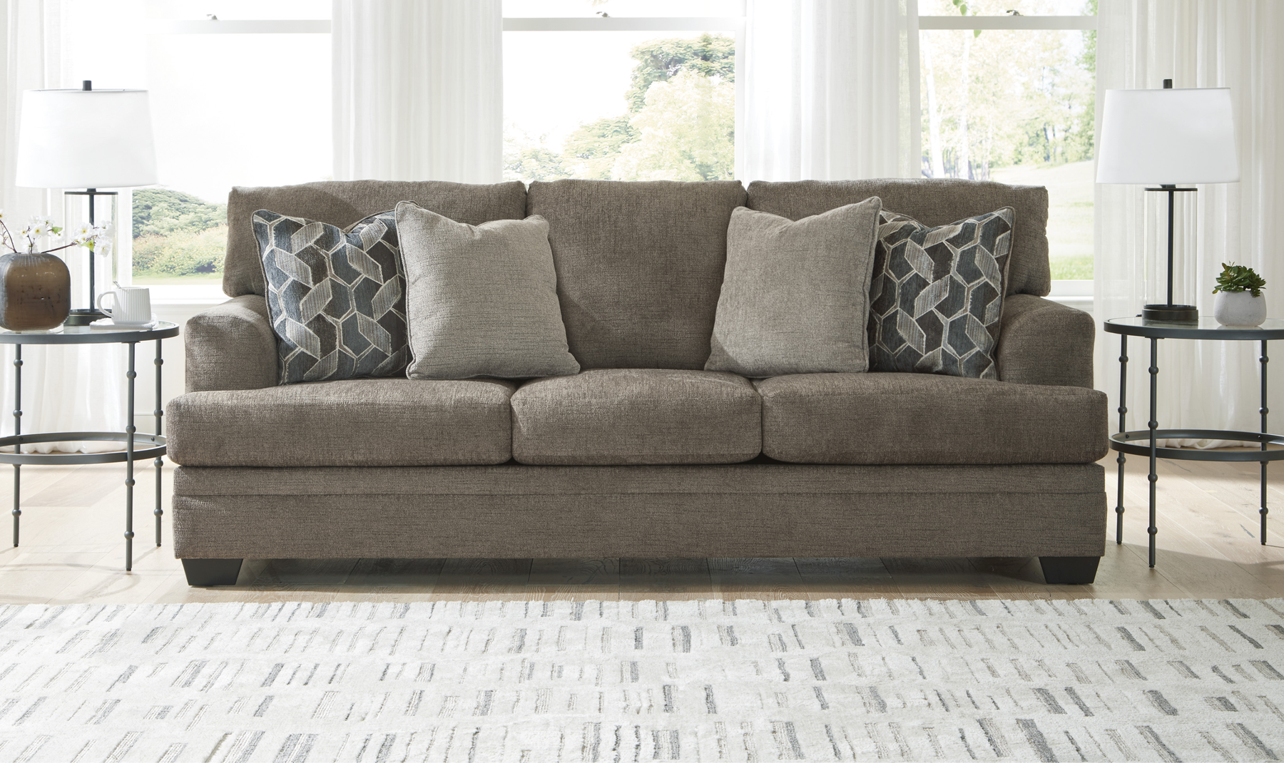The Stonemeade queen fabric sofa sleeper is designed to balance everyday seating comfort with practical guest accommodations. Upholstered in ultra-soft polyester fabric, it offers a comfortable place to sit, relax, or entertain. Track arms and a streamlined profile give the sofa a contemporary look, while loose seat cushions and attached back cushions provide structured, supportive seating for daily use.
