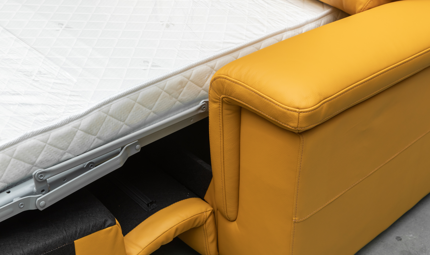 Discover the perfect harmony of comfort, innovation, and modern elegance with the Klaussner Dakota Queen Sofa Sleeper. Upholstered in a striking blend of brown and lemon yellow leather, it brings warmth, personality, and refined sophistication to any living space.
